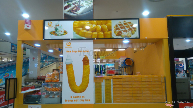 7.8Deli Manjoo - Bánh Trái BắpĐi vô Lotte mart nhiều lần rồi nhưng chưa ghé đây ăn thử bao giờ. Nay thằng em mình đòi ăn kem cho bằng được nên ghé mua cây kem 2 đầu 20k. Thấy hơi mắc hơn kem Jollibee hay Lotteria nhưng ăn rồi mới thấy chất lượng lắm. Bánh giòn, kem thấy vậy mà nhiều ghê, 1 đầu sô cô la, 1 đầu vani, 1 người ăn muốn không hết. Chưa ăn thử bánh trái bắp ở đây lần nào nhưng hôm đó hơi no nên chưa thử, lần sau sẽ ghé. Thấy so với lúc mới mở thì chỗ này vắng khách hơn nhiều. ...Xem thêm
