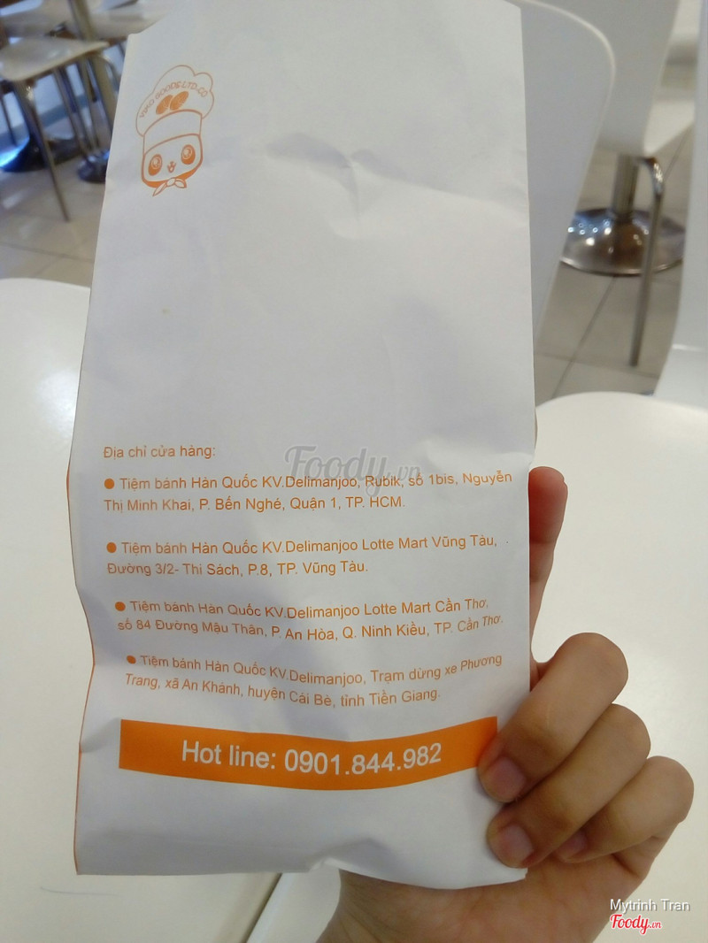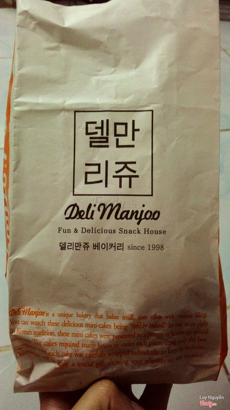 7.6Bánh Ngọt Delimanjoo - Lotte MartĐi ngang quá thấy tên bánh Delimanjoo nghe lạ quá vô mua thử Không gian: nhỏ à, ngoài bán bánh này còn bán kem nước các loại Phục vụ: nhanh nhẹn mau lẹ, vui vẻ giới thiệu mình nghe Delimanjoo là bánh bông lan Hàn Quốc mà ngta hay tặng sinh nhật gì đó Chất lượng: quầy bánh thơm nức mùi sữa bơ, miếng bânh be bé, cốt bánh mềm mịn, không quá ngọt nên ko bị ngán, nhân kem sữa thì hơi bị ngấy, chắc ai mê bánh ngọt sẽ thích vì nó thơm lắm, nhân choco đậm mùi nhưng cũng ngọt quá Giá cả 25k 10 cái truyền thống, 35k loại choco ...Xem thêm