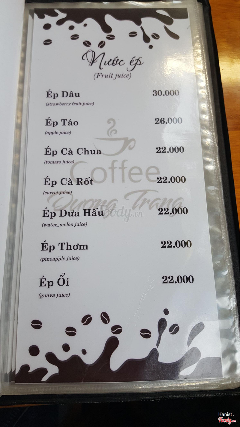 8.0Dương Trang CafeĐi với đám bạn qua quán này để uống cà phê, gọi 1 ly nước ép cam vắt và 1 ly trà lipton đá, 1 cà phê đá, theo mình cảm nhận thì nước cam vắt khá là vừa miệng vị chua chua ngọt ngọt vừa phải vị cam khá là nhiều nên uống ok lắm nhe, cà phê đá cũng nhiều và thơm lắm luôn ấy Không gian quán này cũng rộng rãi và thoải mái lắm nhe, bàn ghế ở quán này mình thấy ngồi cũng thoải mái lắm luôn ấy, nhân viên quán phục vụ khá là nhanh nhẹn nhe ...Xem thêm