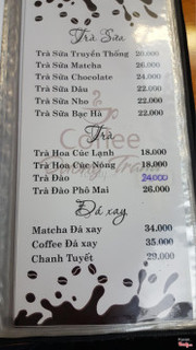 8.0Dương TrangQuán sạch, đep. Nhân viên năng động, nhiệt tình. Không gian thoáng mát, có khu ngồi ngoài trời, phòng máy lạnh và cả ghế võng nữa. Giá chi sinh viên ( là sinh viên còn được giảm giá nữa ). Matcha đá xay: hơn ngọt, thơm, khá ngon Cacao sữa đá: cái này ngon, không béo sữa lắm mà cũng hơi ngọt Order riêng: caffe sữa đá bạc hà: thơm mà mùi vị cũng lạ ...Xem thêm