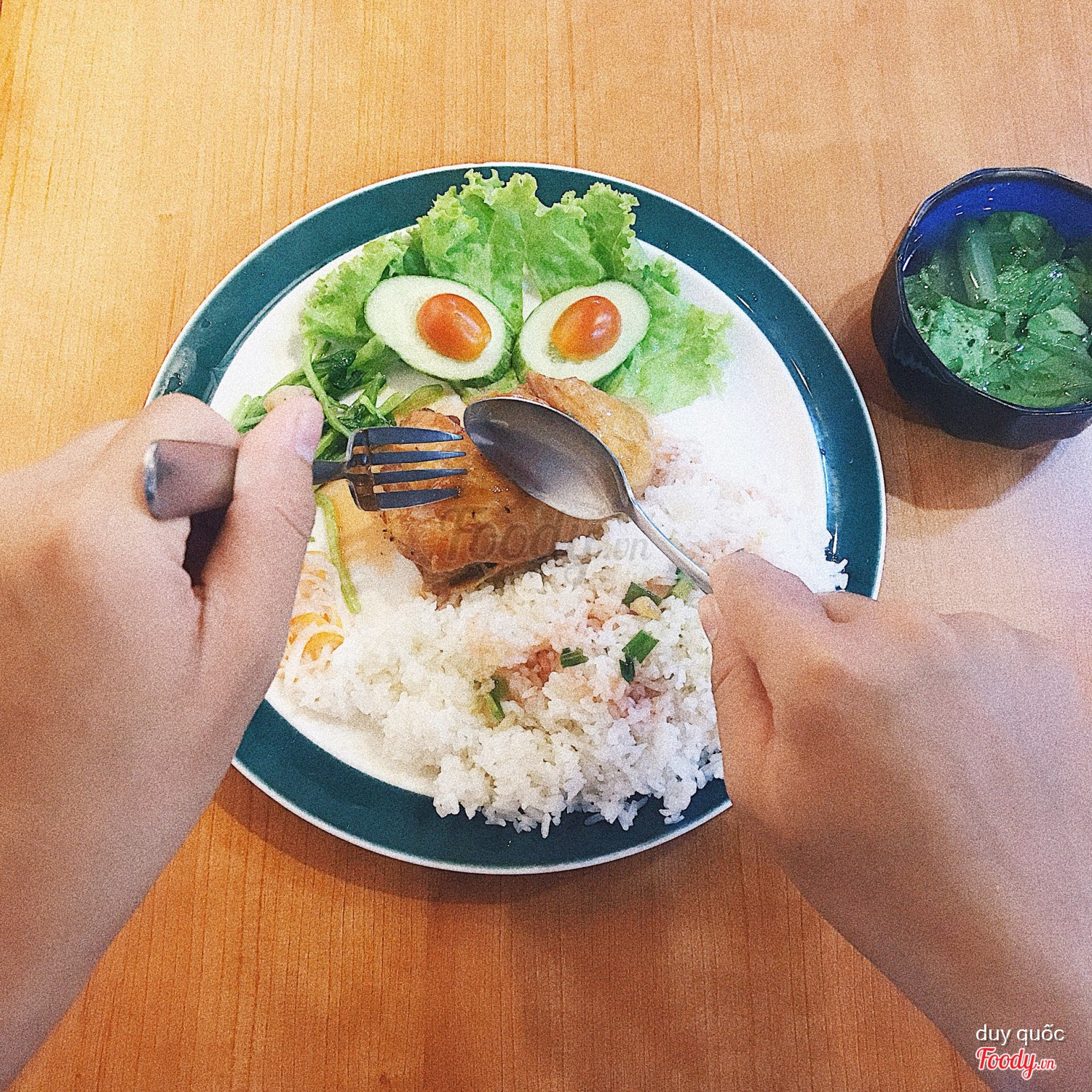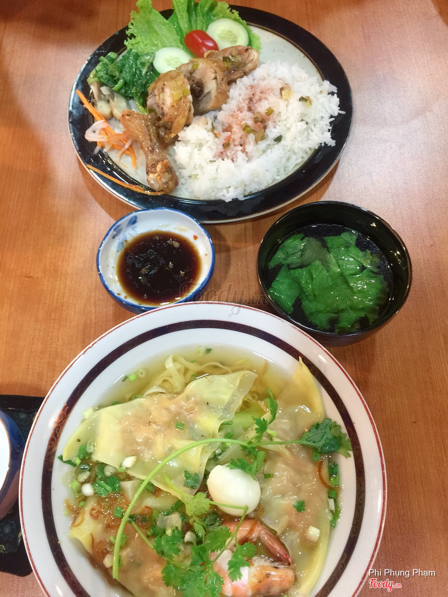 Cơm gà xá xíu đùi gà + mì hoành thánh