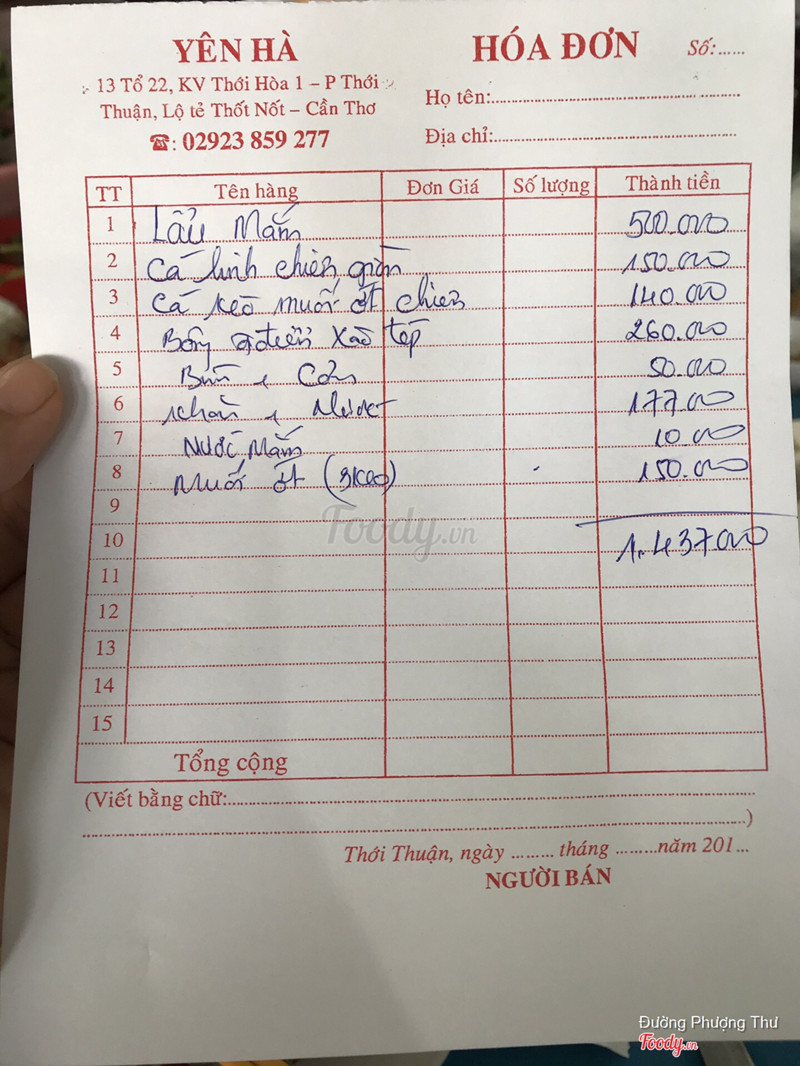 10Lẩu mắm Yên Hà- Địa chỉ: Ngay công viên Ngã ba lộ tẻ Rạch Giá - Kiên Giang, thuộc phường Thới Thuận, Quận Thốt Nốt, thành phố Cần Thơ. - Lẩu mắm Yên Hà gia truyền trên 35 năm - Chất lượng - uy tín - Đáng tin cậy - Số điện thoại liên hệ: 0918625374 - 0918398584 - 0292 3859277 ...Xem thêm