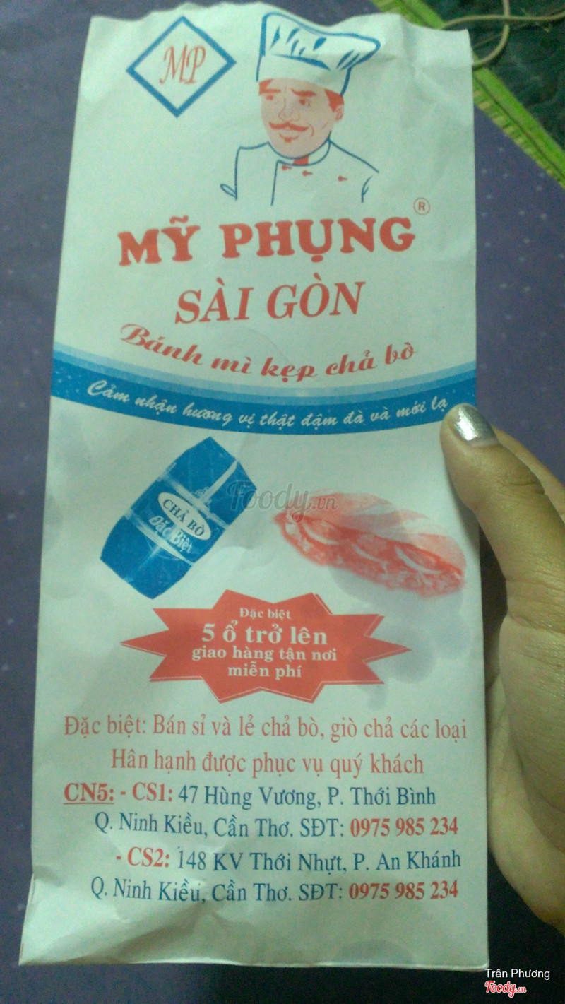 7.8Lò Bánh Mì Mỹ Phụng 2 Sài GònTiệm bánh mì mới mở đông khách, có nhiều cái lạ lạ, chả bò nè chưa ăn bao giờ cũng ăn nhiệt tình đồ đi thử. Tiệm bánh lớn quá mà, đang cạnh tranh đây, thấy có nhiều chi nhánh rồi mà khá xa nay mở gân đường đi học cũng đỡ. Thử bành mì chả bò, 10 ngàn 1 ổ tạm ổn, có được 2 3 miếng chả bò cát đẹp mắt cắt dày, khá đầy ổ bánh mì , vị chả ăn không thích lắm, k nghe mùi bò, toàn vị bột thôi có mỗi màu chả bò là giống. Ngoài ra còn nhiều loại bánh mì khác nữa, chưa thử nên chưa nói gì được nhiều. Sẽ thử, giá cũng bình dân bánh mì cũng ngon. ...Xem thêm