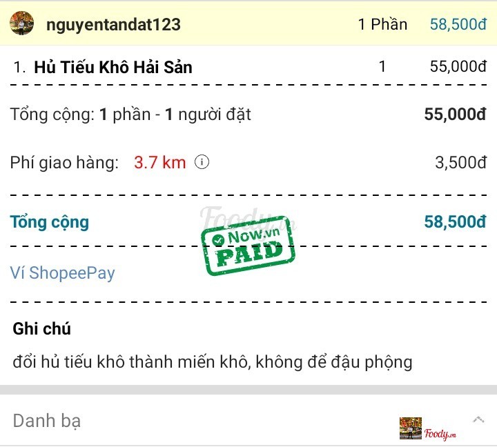 3.0Quá bực mìnhMình đặt quán miến khô hải sản mà đi làm hủ tiếu nam vang khô, khác nhau như vậy cũng nhầm được, đã vậy còn bị chênh giá tiền 10k nữa chứ. ...Xem thêm
