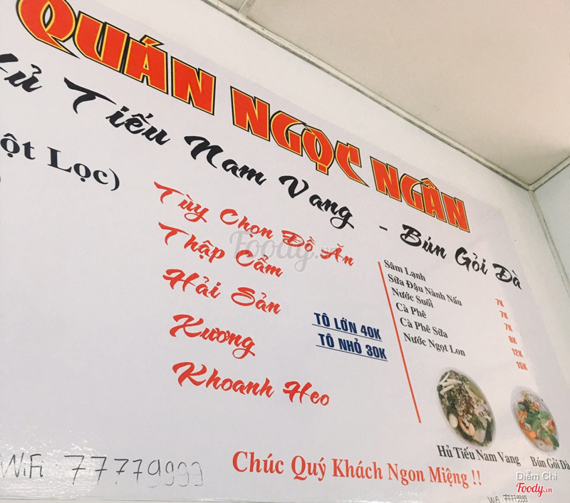 8.0Ngọc Ngân - Hủ Tiếu Nam VangKhông gian: bàn ghế cao ráo, dưới đất sạch sẽ, quán rộng rãi thoáng mát. Menu: đồ ăn và đồ uống có đủ, đồ ăn thì hàng đồng giá 35k còn nước thì tuỳ món. Nước dùng nêm đậm đà nhưng vừa ăn và không thấy có quá nhiều bột ngọt. Đồ ăn nhiều, tươi. Sợi hủ tiếu dai, dài. Đặc biệt là cực kỳ nhiều hành lá. Bãi xe: ọp ẹp, thiếu thốn rất nhiều đối với sức chứa của quán. Xe ô tô đậu là đúng thảm hoạ. Phục vụ: Nhanh, tính tiền cũng nhanh, có dẫn xe hộ là không có. ...Xem thêm