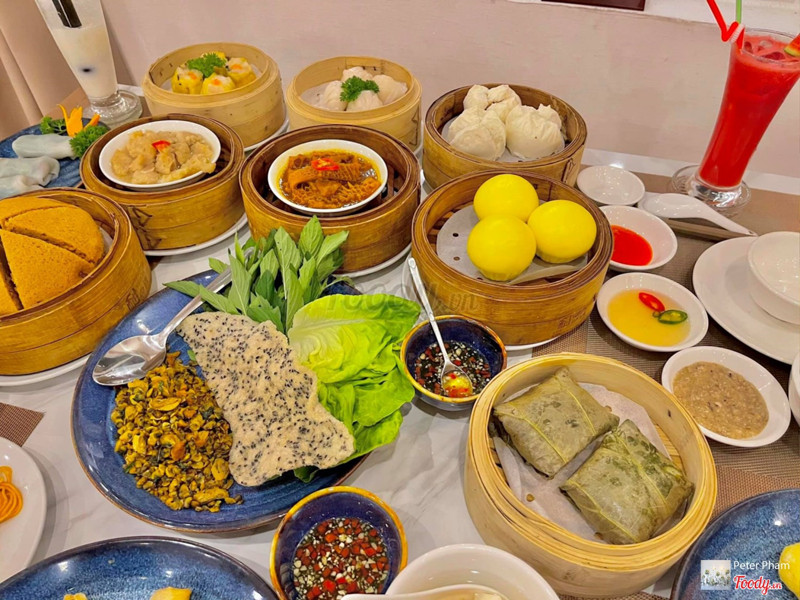 8.6Buffet dimsum và món huế 229k 50 món (11h-14h & 18h-21h)VỊ trí: Nằm gần công viên nước cần thơ Đặt bàn trước nên được tặng 1 ly nước tiêu vị (có vị chua chua uống rất giải ngán) Đến lúc 10h45, phục vụ đưa tờ giấy (7 món bị gạch bỏ là đã hết món) chon món thì đúng 11h mới bắt đầu buffet Những món có đơn vị là viên, cái, gói thì mình chon 1 thì người ta sẽ đem ra 1 viên hoặc 1 cái. 1 cuốn thì được cắt ra làm 3 khúc 1 phần chân gà hấp tàu xì thì là 1 chân (đáng tiếc là không có món này) 1 phần sườn non hấp tàu xì thì được 2 - 3 cục nên mình gọi 3 phần Chả giò chiên, hoành thánh chiên đều là mới chiên nên rất giòn xôi đậu chiên (trong mềm ngoài giòn), Dimsum (da mỏng nhân nhiều). chè (có nhãn nhục, tuyết nhĩ, táo đỏ, hạt sen) Món cơm chiên rất khô nên mình chỉ ăn đươc mấy muỗng đã ăn không nổi 1 trong 2 loại bánh cuốn chiên có 1 cái rất cay Các món ăn đều nóng ...Xem thêm
