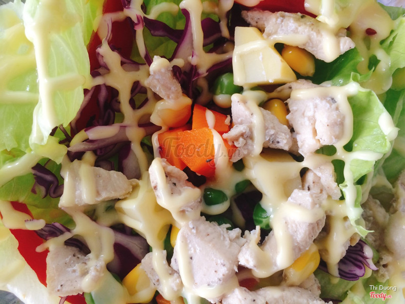 7.6Salad gàP.Juice là một quán mới với hình thức kinh doanh khá độc đáo là sản phẩm giảm cân bao gồm nước sinh tố và salad. Mình có theo dõi quán này trên facebook thấy quán đầu tư sản phẩm chu đáo và hình ảnh rất đẹp. Khi quán có lên Now thì mình cũng chọn order món salad gà để dùng thử vì thấy hình rất hấp dẫn ạ. Một phần salad này là 30k có vẻ giá khá cao nhưng mà chất lượng ok lắm, không làm mình thất vọng. Phần salad đựng trong hộp sạch sẽ lịch sự, chưa có logo. Salad gồm nhiều loại rau, màu sắc hấp dẫn, ức gà thì xé dạng viên. Đặc biệt là cái sốt để trộn salad, mình nghe được mùi chanh dây. Có phải là sốt chanh dây không ạ? Mình thấy béo, thơm và chua rất ngon, vừa ăn. Mùi vị lạ nhưng thú vị lắm. Nếu có dịp sẽ ghé quán xem thế nào. ...Xem thêm
