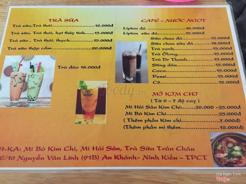 7.2Quán Hiếu Kim Anh - Mì Kim ChiHổm nói thèm mì cay đòi đi ăn cái con em nói có chỗ này mới mở rủ đi ăn thử thế là đu theo nó chạy xa xôi tới tận đường Nguyễn Văn Linh ( nói hơi quá :v )Thật sự khi bước vào quán hơi bị bất ngờ vì quán có không gian rất dễ thương, ban đầu mình tưởng tượng là quán chắc cũng bình thường thôi nhưng ai ngờ đâu trang trí có tâm đến vậy. Tường được vẽ nhiều bông hoa nhìn rất thích thú. bàn ghế ghỗ sạch sẽ bóng loáng. Muốn ngồi bệt kiểu Nhật hay ngồi ghế thẳng kiểu ta cũng được luôn. Phục vụ cũng dễ thương tương tự vậy, quán có các loại mì kim chi, hải sản, trà sữa... ăn cũng khá là ngon và giá cũng hợp lí. ...Xem thêm