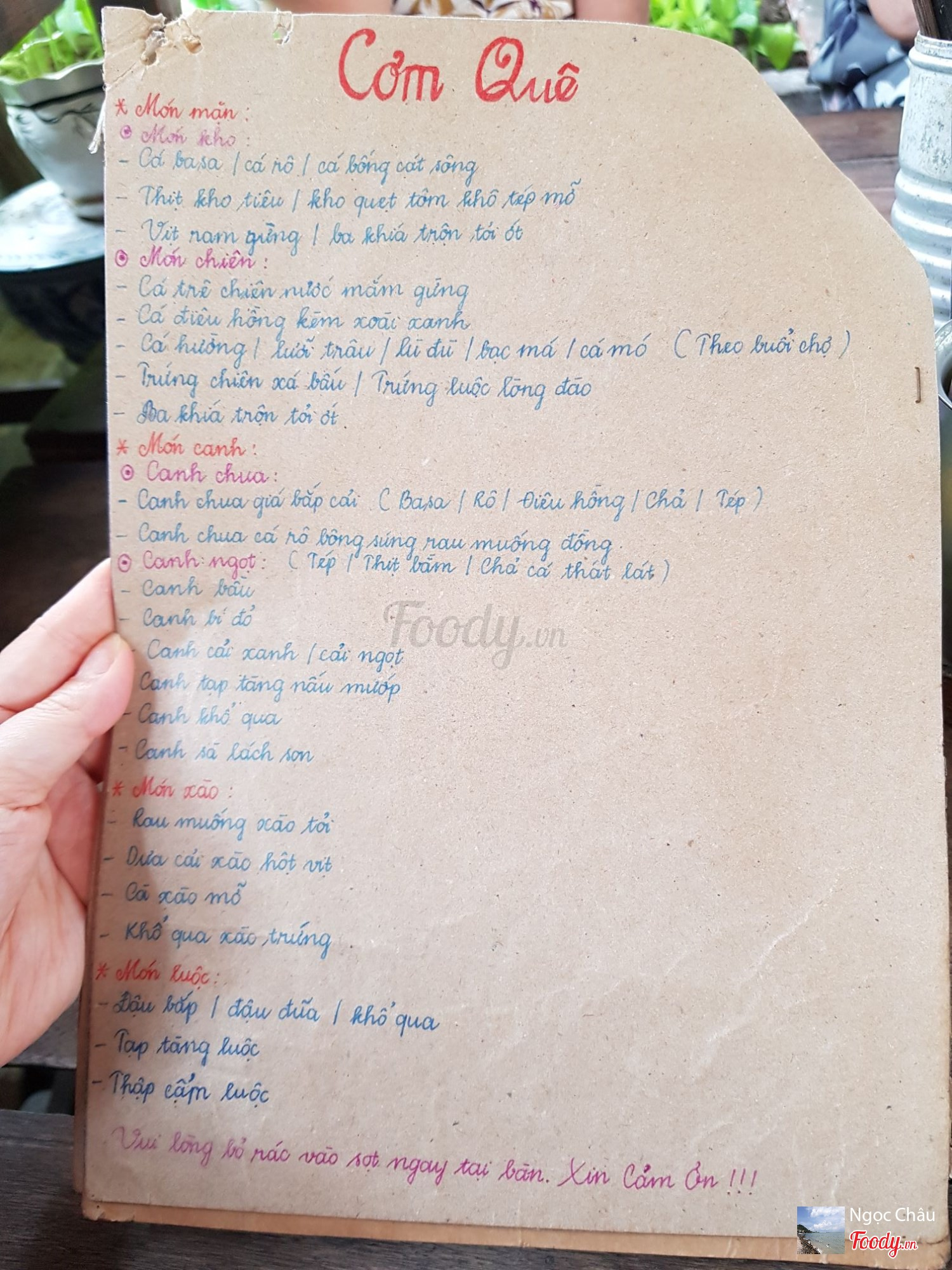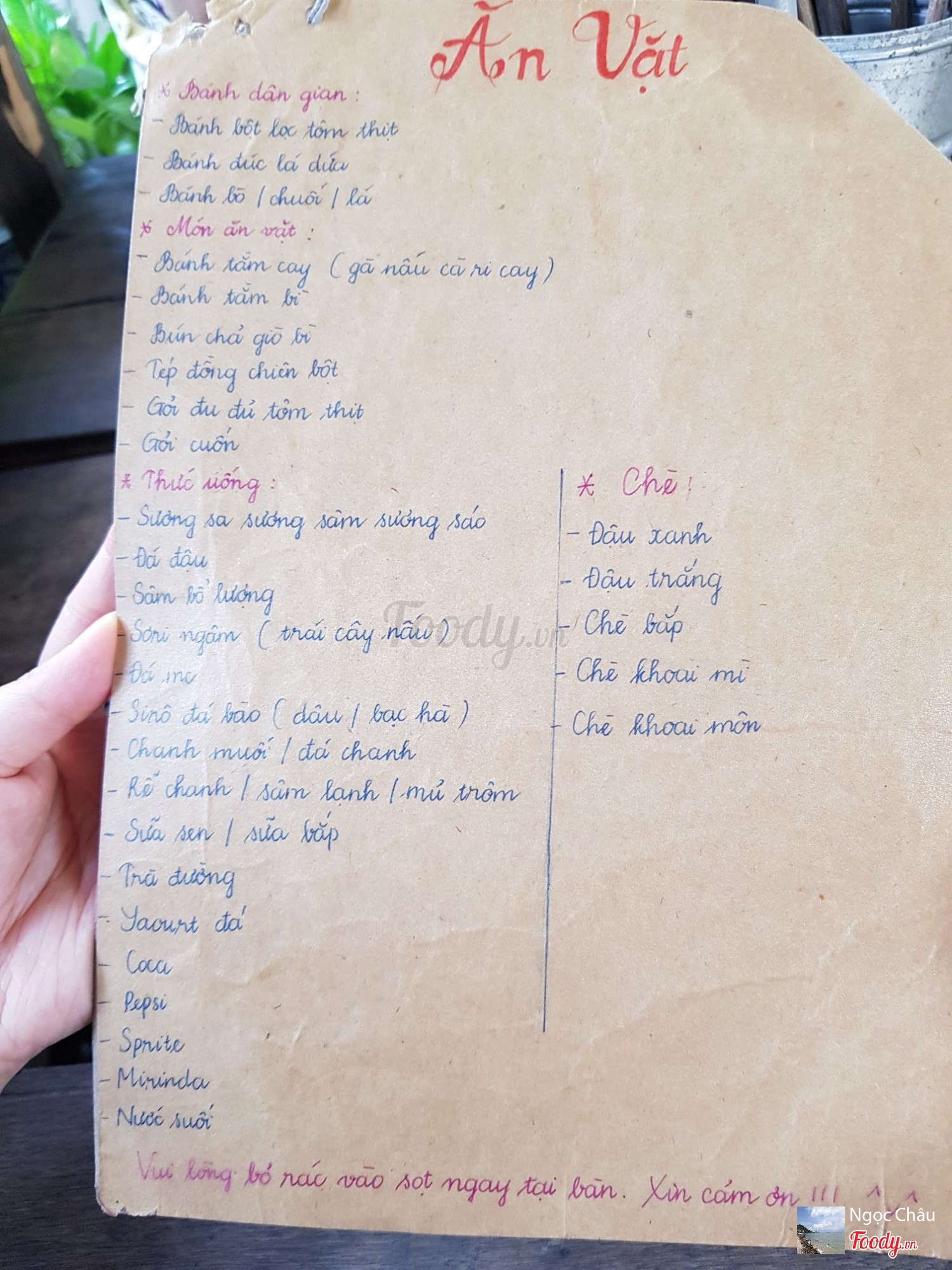 Ghi chú đặt bàn