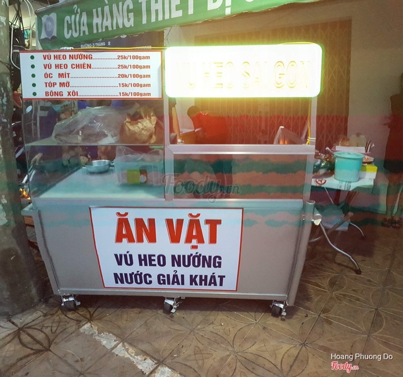 7.2Vú Heo Sài GònQuán mới mở cách đây không lâu lắm, mình dễ dàng phát hiện khi trên đường về nhà. Điểm đặc biệt của quán là phục vụ các món về thịt heo, chiên, nướng đủ loại. Quán bày trí khá đơn giản, chỉ có 1 xe đẩy nhỏ và các bàn ghế trọng lượng nhẹ bày ra, có tất cả khoảng 3 – 4 bàn. Món vú heo sắc thịt không như các quán khác, nhưng độ dài thì giống vậy, mùi vị không đậm đà lắm. Ngoài ra còn có các món khác như bông xôi…Khách hàng lại mua về rất nhiều, vì vậy bạn thường sẽ thấy quán hơi vắng. ...Xem thêm