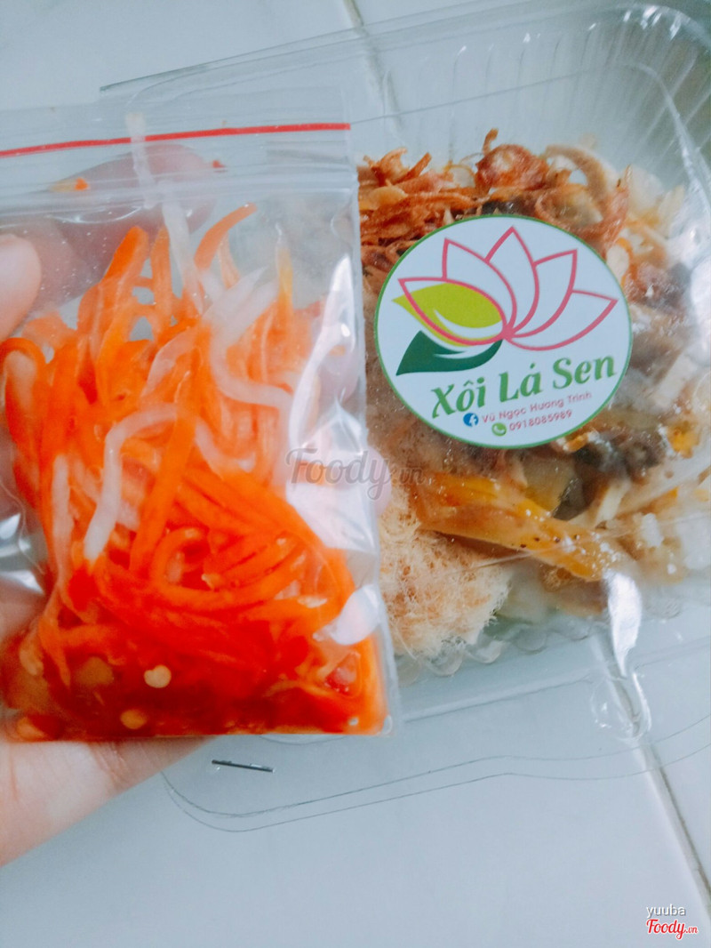 8.2Xôi lá sen & Trà đào chanh sảThèm xôi nên lên foody đặt ngay 2 hộp như hình v là no nê cho buổi chiều 2 ng nha😍🍝🍝 Xôi đc để trong lá sen, hộp sạch sẽ, nhìn khá thích mắt, hộp xôi giao tới còn nóng hổi, thơm nức luôn nhe 🌼 Tụi mình có xịt thêm sốt mayonaise chứ lúc đầu k có, quán có để riêng một bịch dưa chua ăn kèm nữa. Xôi dẻo và ngọt, ăn bùi bùi béo béo. Quán cho khá nhiều chà bông vs thịt nha, nhìn hộp nhỏ xíu v chứ ăn khá no và dễ gây nghiện 🌻😝 ...Xem thêm