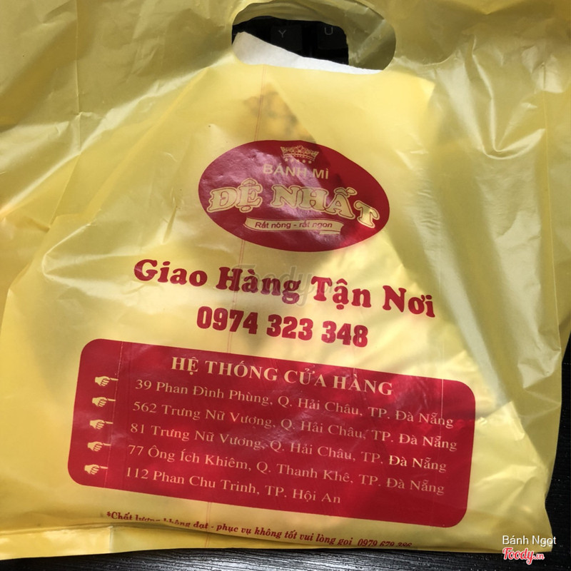 7.4Bánh Mì Đệ Nhất - 560 Trưng Nữ VươngChất lươngh tốt, hợp vệ sinh.Bánh mì ngon giòn nóng hổi. Ngọt thịt, rau và rau củ tươi, nước sốt ngon. Thích nhất thái độ phục vụ của nhân viên. Nhân viên làm việc rất chuyên nghiệp, mặc dù khách đông, người nào tới trước thì bán trước mặc cho một số khách cứ thích chen lấn. Đối diện tiệm là trường tiểu học , mỗi lần có học sinh mua, anh nhân viên còn nhiệt tình dắt các em qua đường. ...Xem thêm