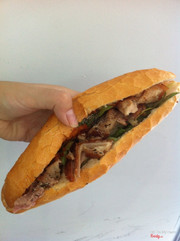 8.0Bánh Mì Thịt Quay Bà HoàiLâu lâu thèm thèm nên ghé đến quán mua ổ bánh mì heo quay ăn. Bánh mì chỉ có 10k/ổ thôi mà ngon lắm luôn. thịt heo được quay chín đều, không bị hôi. de heo giòn rụm cùng với bánh mì cũng giòn giòn ăn cực ngon. Heo có vừa nạt vừa mỡ ăn mằn mặn, beo béo nữa. ổ bánh mì đầy đặn, béo ú luôn, khá hấp dẫn, chỉ cần nhắc đến thôi là đã thấy thèm rồi! sẽ còn ăn nhiều lần nữa! ...Xem thêm
