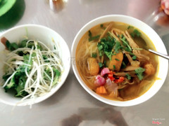 7.2^-^.Không gian:quán nhỏ nhưng nhìn rất sạch sẽ .Phục vụ:mấy cô bán hàng rất nhiệt tình,còn chỉ dẫn mình nếu ăn măng gà nên chan loại mắm nào nữa .Giá cả:trung bình khoảng 20k/tô đầy ắp .Món ăn:mình kêu bún chả cá với bún măng gà -Bún chả cá khá ngon,chả với riêu nhiều,cơ mà bí đỏ để nguyên vỏ,mình thì thích bỏ vỏ hơn -Bún măng gà:gà nhiều,thịt dai,măng ngon,giòn,nước lèo chua ngọt rất ok ...Xem thêm