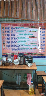 5.0Cháo dinh dưỡng Tâm Vang hương vị thơm ngon - dành cho mọi lứa tuổi . Con ăn khỏe - mẹ an lòngCháo dinh dưỡng Tâm Vang kính chào các bậc phụ huynh . Đến với quán cháo Tâm vang các mẹ yên tâm về nguyên liệu chế biến cháo , quán cam kết nguyên liệu sạch tươi ngon bổ dưỡng . Ở đây thức ăn được hấp và xay khô nên thành phần dinh dưỡng luôn đảm bảo , hương vị món ăn rõ ràng không pha lẫn vào nhau cũng như màu sắc các món . Đặc biệt quán có thêm dầu nén rất thơm và giúp các cháu đỡ cảm . Các vật dụng của quán luôn được trụng nước xôi sạch sẽ . Nên các mẹ hãy chọn quán cháo Tâm Vang để con bạn có những bữa ăn đầy đủ chất dinh dưỡng các mẹ nhé . ...Xem thêm
