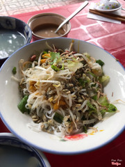 7.4Cơm Hến - Ngô Gia TựMình đi 1 lần buổi tối mà tìm không ra, hóa ra quán này chỉ bán buổi sáng. Các món cơm hến, bún hến, mỳ hến đều đồng giá 20k/ tô. Mình ăn bún và mỳ thấy đều ngon nhưng mỳ trông có vẻ đầy đặn và ngon mắt hơn bún. Hến con to, không bị sạn. Ngoài hoa chuối non, rau thơm, giá đỗ, dọc mùng (bạc hà) như những quán khác, ở đây còn có thêm khế, ăn lạ miệng. Cô bán rất nhanh nhẹn, hôm khác sẽ quay lại thử món hến xúc bánh tráng xem thế nào. ...Xem thêm