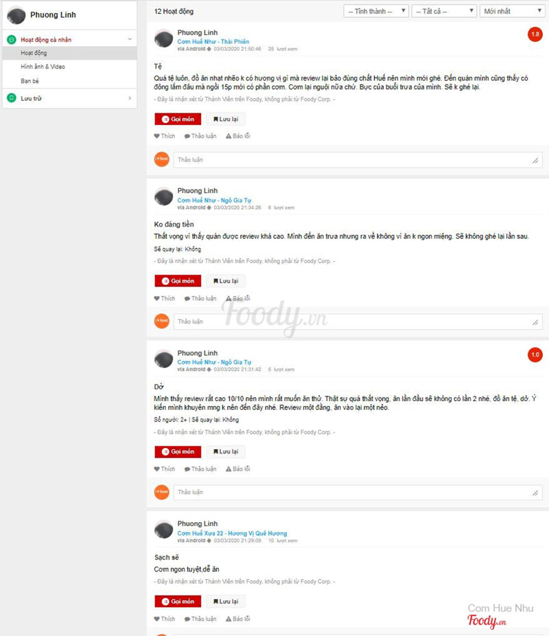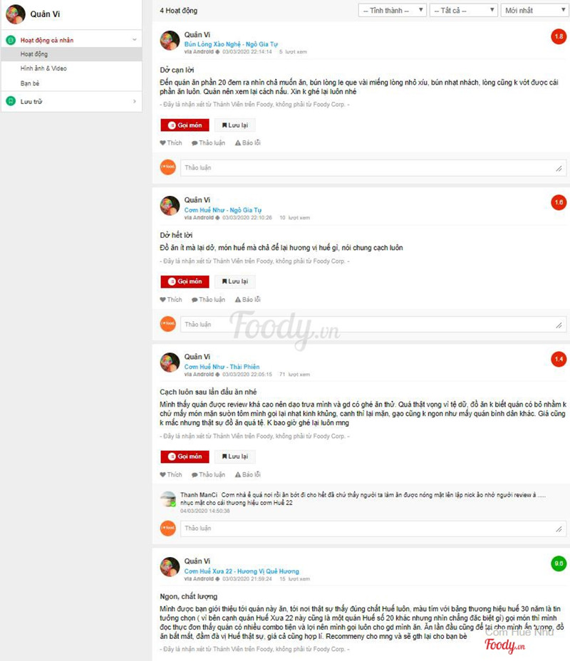 10Bài đính chính của quánLoa Loa Loa Corona Corona virus không chỉ là viêm đường hô hấp cấp ở người nó còn làm suy thái đạo đức của không ít người quí khách tin không ??? Đường sá vắng vẻ, hàng quán ế ẩm là những gì đang diễn ra tại Đà Nẵng thân yêu, Quán mình ế ẩm thấy quán khác bán được thì lại làm trò hề lập tài khoản ảo ở các trang Foody, Google, Facebook.... review hạ uy tín của Huế Như Buồn thật sự, Đây đâu xứng gọi là đối thủ cạnh tranh , đây còn đâu là những con người Đà Nẵng thân thiện, Huế Như đang nỗ lực hết mình để mang đến quí khách những bữa ăn ngon, dinh dưỡng với chi phí bữa cơm tốt nhất có thể và đã được rất nhiều quí khách công nhận đó là tất cả khách quanh khu vực đều chọn Huế Như là điểm đến trong mùa dịch này Huế Như tin tưởng quí khách hàng luôn ủng hộ để ngày càng phát triển nhằm mang lại quí khách hàng những món ăn ngon nhất có thể ...Xem thêm