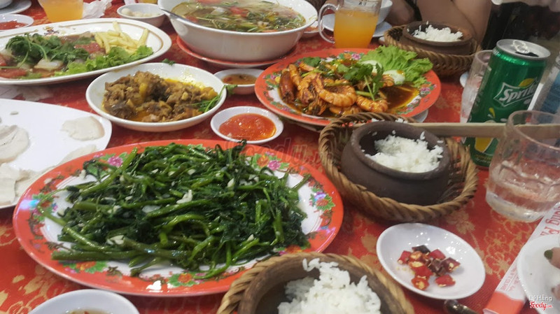 Bữa tối trong chuyến du lịch bọn mình được công ty đặt ăn tại đây. Quán được dặn trước nấu đồ ăn mang hương vị miền Bắc nên khá hợp khẩu vị mình, không bị mặn hay cay quá như kiểu miền Trung ^^ Đồ ăn của quán khá ngon, mình rất thích ram tôm, vỏ giòn, nhân ngon. Cơm niêu nấu cũng ngon nữa, gạo dẻo đựng trong từng niêu đất bé bé xinh xinh rất có cảm tình. Cá hấp thịt chắc, canh chua ngọt ngọt chua chua rất đưa cơm... Nói chung cả bữa ăn mình thấy rất ngon miệng. ...Xem thêm