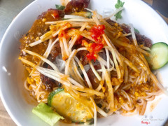 6.0Đào - Bún Thịt Nướng - Nem Lụi & Bánh XèoMình đã ăn ở quán 2 lần. Lần đầu thấy thịt hơi có mùi chua nhẹ. Lần sau thì thịt không chua nhưng thật sự thịt nướng ở đây không ngon. Thịt cứng và quá dai, còn miếng không dai thì lại khô. Không gian quá thì bình thường. Giá cũng 20k/tô bún khá nhiều. Địa điểm dễ tìm. Chắc sẽ không quay lại. Mình có chụp ảnh những lỡ tay xoá mất nên không có ảnh đăng 😰😰😰 ...Xem thêm