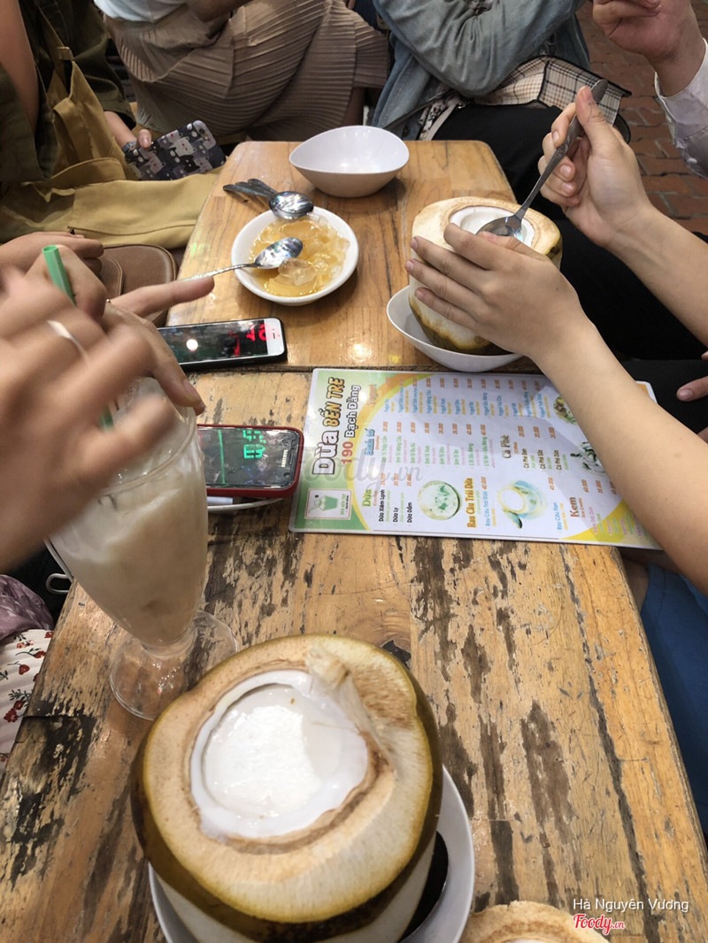 7.0Dừa Bến Tre - 190 Bạch ĐằngMình và tụi bạn thích rau câu trái dừa thế là phi xe tới quán. Quán ko có chỗ để xe mà sẽ lái xe của bạn đi đau đó nen tới quán phải để lại chìa khoá xe nha. Viêw quán là view bờ sông nên mát mẻ, nhìn thấy xe cộ qua lại. Thấy du khách đi dạo và dc mời vào uống nc dừa. Giá dao động 30-50k mình không nhớ rõ. Mình cũng ăn rau câu dừa nhiều quán rồi. Quán này thì tạm được chứ ko quá xuất sắc. Bạn mình ăn kem plan thì ns không ngon lắm nên các bạn cân nhắc nhé ...Xem thêm