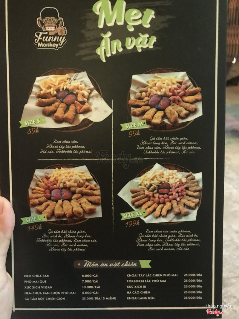 6.4Funny Monkey - Chè Trái Cây & Fastfood - Lê Đình LýQuán dễ tìm, sạch sẽ, view ổn Mình vào gọi mẹt 99k như hình 2ng ăn mà no quá trời. Mình còn gọi 2 ly hồng trà trân châu uống thử. Thật ra là trà sữa lun đó vì ngta bỏ thêm sữa vào nữa, như vậy thì ko phải là hồng trà nữa rồi mà lại còn rất nồng nữa. Với có trân châu mà đưa cho mình cái ống hút như ống hút nước mía vậy. Ko biết hút trân châu kiểu gì đây. Mình cũng khá bối rối vì đến mà ko biết để xe chỗ nào và cũng ko có ng hướng dẫn. Còn lại thì đồ ăn khá ngon, sẽ quay lại để thử các món khác :) ...Xem thêm