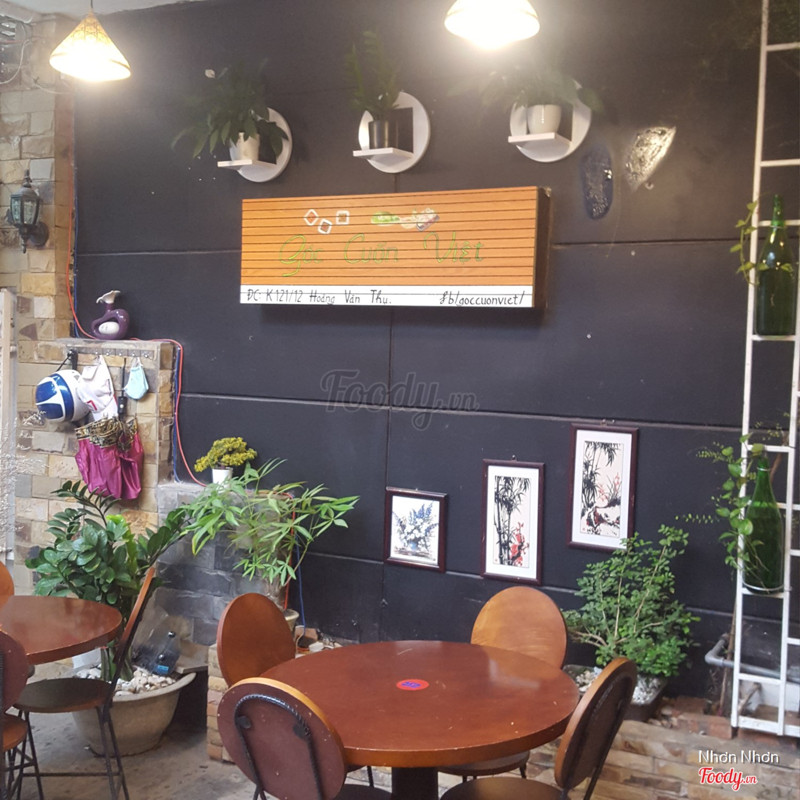 8.0Góc Cuốn ViệtQuán nằm trong hẻm nhưng không gian cũng rộng rãi mà decor dễ thương lắm nhá. Có khu ngồi bệch đi với bạn bè ngồi cũng hay. Tưởng bán gỏi cuốn không chứ ai ngờ nhìn menu thì còn có cả lẩu và nướng nữa. Hôm trước ăn gỏi cuốn, bánh ướt cuốn thịt nướng thấy ok lắm, bếp trình bày đẹp mắt. Lẩu nhỏ 45k thì cũng rẻ. Có dịp thì sẽ ghé lại. ...Xem thêm