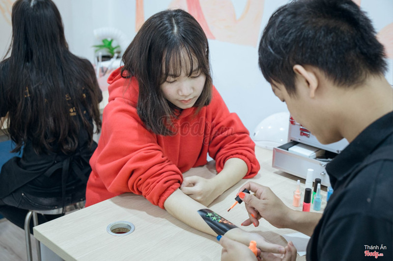 8.2Hannah Brows & NailsTết cận kề rồi phải lo đi làm nails thôi này, tiệm ở trung tâm nên khá dễ tìm, nhân viên thân thiện Tới đây đúng dịp khuyến mãi nên làm nail sơn gel có 89k thôi Ở đây có đào tạo học viên chuyên nghiệp, ai có nhu cầu học nails đi nước ngoài có thể học cấp tốc á, còn ưng học tạo phun xăm chuyên nghiệp, điêu khắc của Phibrows thì có luôn Mình lên phòng làm mày thấy chị chủ quá trời bằng cấp, giấy chứng nhận nên tay nghề cũng cao đó Làm mày hay môi thì được mặc áo tiệt trùng hợp vệ sinh nữa Nói chung là khá chăm chút cho khách ...Xem thêm