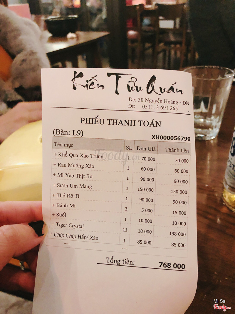 7.2Kiến tửu quánTụi mình đi trời hơi mưa nhưng quán khá đông và khá ồn Nhân viên phục vụ nhanh nhẹn, dễ thương Đồ ăn lên nhanh, một phần nhiều, mình ăn thấy tạm, không nên gọi cơm chiên, cơm chiên không ngon lắm Quán có bán mấy loại rượu thuốc, uống ấm bụng, nhưng hơi hôi mùi thuốc bắc Quán có tầng trên nữa, k biết tầng trên thế nào nhưng tầng dưới ồn ào, không được thoả mái lắm ...Xem thêm