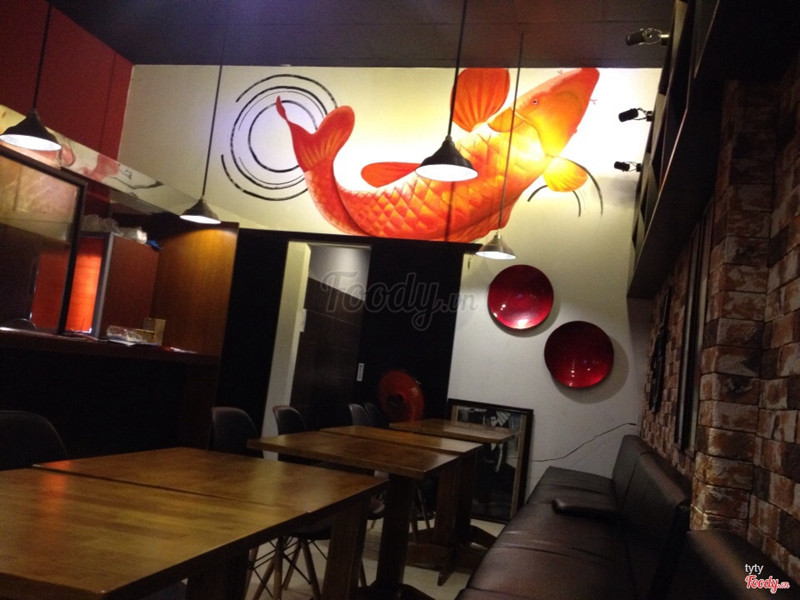 8.4Chắc chắn sẽ đến ăn dài dài <3 <3 <3Quán nằm hơi khuất nên hơi khó tìm, mình vs đám bạn phải vòng 2, 3 lần mới đến nơi. Không gian quán nhỏ nhỏ xinh xinh, có hồ cá Koi vs mấy dãy sake trưng bày rất độc đáo. Bọn mình mới chỉ thử đc mấy món nhưng nói chung rất hài lòng. Beach roll ngon, mình sợ k ăn đc cá sống mà ăn vào k có cảm giác tanh mùi cá, ngược lại tươi và béo béo ngậy ngậy. Sashimi rất tươi, tiếc quá có 3 miếng mà 4 đứa lận. Chicken teriyaki bento thì to oạch, ăn no căng rún (bất ngờ quá luôn, tại lâu nay toàn ăn gói bento mực 10k/gói :))) Đặc biệt trà đá vs phồng tôm free,( thấy mấy bạn phục vụ hay gọi là otoshi), mấy bạn phục vụ cũng dễ thương nữa. À tại vì khu Tây nên vô ăn toàn gặp mấy anh chị Tây cool ngầu, đẹp dễ xợ >.< Lo ăn quên chụp hình :(((( ...Xem thêm