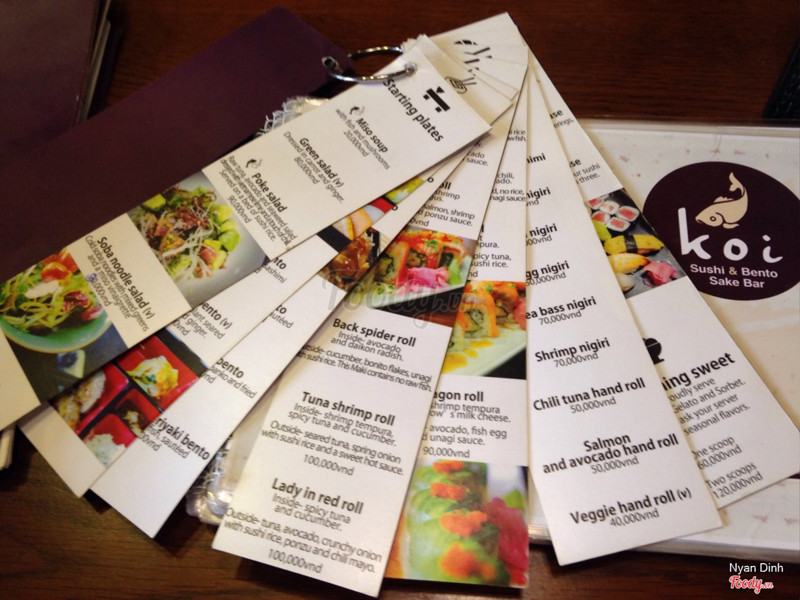 9.0Koi Sushi & Bento Sake BarĐược biết koi qua sự giới thiệu của 1 người bạn hiện đang là nhân viên của quán . Ấn tượng đầu tiên là phong cách trang trí giống như các nhà hàng nhật bản có quầy để rượu và 1 dãy bàn dài sát quầy rượu , đối diện thì có bàn đơn mà mình đi 2 người ngồi 2 bàn mới đủ , bàn đơn nhỏ . Ở ngoài cũng có bàn . Phong cách phục vụ tận tình chu đáo , chuyên nghiệp NHƯNG đừng nhìn khách chằm chằm sẽ gây ra sự khó chịu đối với khách . Kiểu nhà hàng phục vụ khách tây nhiều nên menu k có tiếng việt , đây là bất lợi nếu khách việt ít biết tiếng anh muốn thưởng thức. Menu ít hình ảnh đi kèm khiến khách hàng khó lựa chọn hơn , không hình dung ra món ăn nó như thế nào. Ở đây nổi tiếng bento rẻ sẽ quay lại vì đợt này mình chưa thưởng thức bento .miso soup ngon hơn tất cả mọi quán mà mình từng ăn . Set mình ăn thì ngon giá k mắc 260k . Nước bưởi quá đắng ( dở ) . Kem chanh mới làm chua đúng vị quả chanh ( ngon ). Sẽ quay lại nếu có dịp. Nằm ở đường đối diện avatar hotel nên dễ tìm . ...Xem thêm