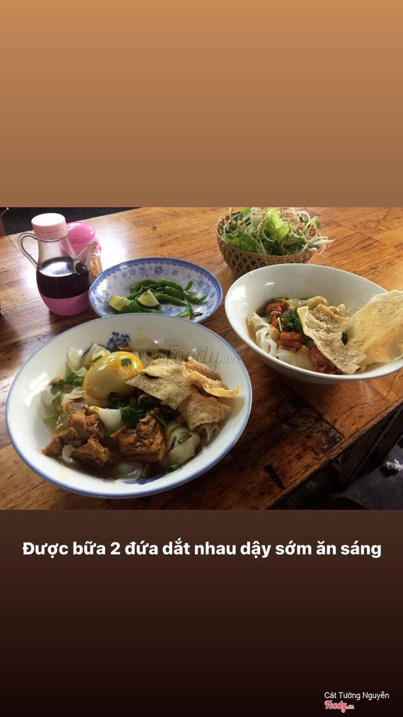 10Mì Quảng Bà DinhMình và người yêu rất hay ăn sáng ở đây. Mì quảng là món mình có thể ăn suốt cả tuần, cả tháng. Bởi vậy mình luôn tìm những chỗ có mì quảng để kéo anh ny đi theo )) Mì quảng ở đây rất nổi tiếng với các bạn trẻ, còn được gọi là mỳ quảng kho đạn. Gần chợ cồn nha. Quán rộng rãi, thoáng mát. Mình thường hay ăn phần gà + trứng vịt 35k Người yêu mình ăn thịt trứng 20k nha Tô của mình là tô lớn luôn nên rất nhiều gà, nhiều mỳ và có cả trứng vịt nên ăn đã đời. Mình thích ăn gà hơn là thịt. Nhưng ny mình lại bảo thích thịt hơn vì thấm hơn. Mình thấy đa số các bạn đến ăn hay gọi mì quảng gà nhất. Nên bạn nào muốn đi thử thì cứ gọi gà bình thường tô sẽ là 20k nha. Giá quá rẻ nè ^^ ...Xem thêm