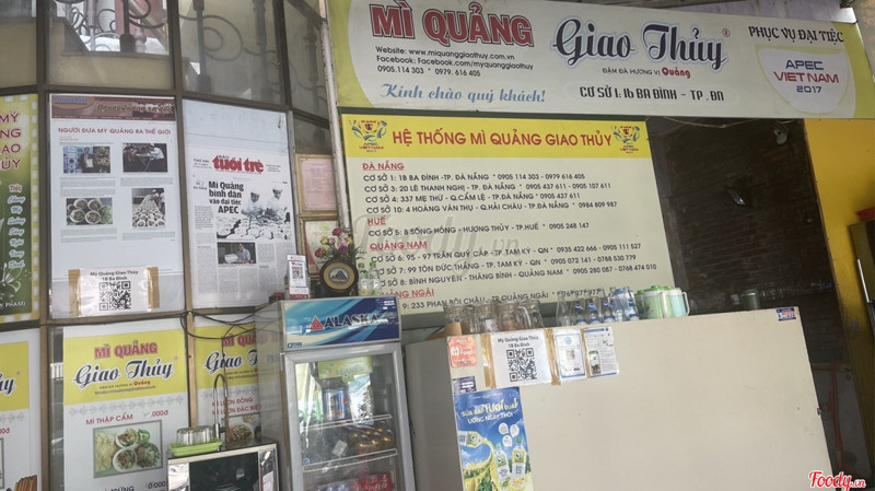8.0Mì Quảng Giao Thủy - Ba ĐìnhQuán này có khá lâu rồi và mình cũng ghé ăn nhiều lần hồi quán còn mới chưa có nhiều cơ sở như bây giờ. Quán rộng rãi thoáng mát, sạch sẽ và nhân viên phục vụ nhanh. Chú chủ quán khá thân thiện vui vẻ với khách, mình thấy giá cả ở đây tương đối ok. Vì chất lượng mỳ quảng ở đây khá ngon. Nhìn rau cũng hấp dẫn nữa :), mình ăn tô mỳ lươn, lươn thấp dù bỏ nhiều rau vẫn thấy gia vị ok. Tô mỳ đặc biệt nên nhiều lươn nhìn hấp dẫn lại ngon, nếu ăn một tô vậy là no nê luôn tới trưa đó chứ. Quán có nhiều cơ sở ở Đà Nẵng và Quảng Nam, cơ sở 5 là bán nhiều món nhất. Mình thì toàn ăn ở cơ sở chính này vì cũng gần trung tâm với lại quán nằm ở khung đường này dễ tìm dễ thấy lại yên tĩnh nên mình thích. ...Xem thêm