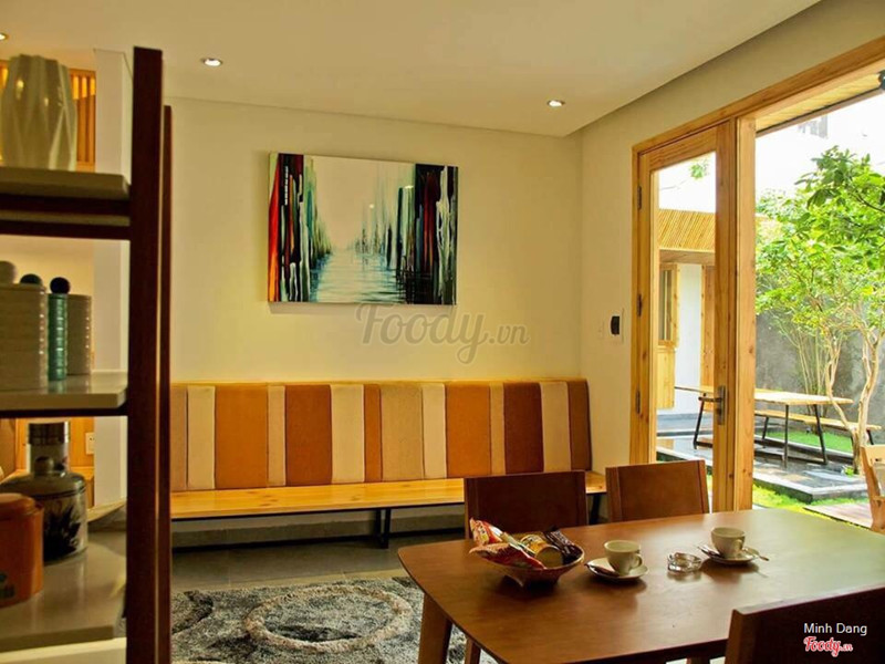 5.4Không gian đẹp cho những ai thích sống ảoMình ở đây 1 đêm. Phải nói là khá thích cái phòng vì rộng và thiết kế gỗ đẹp. View nhìn thẳng ra cái sân vườn duy nhất. Tuy nhiên chỉ có 2 phòng như phòng mình, còn lại là cửa gỗ và nằm trong góc nên khi đặt phòng các bạn nhớ hỏi kỹ (vì giá là như nhau hết thì nên chọn phòng đẹp). Cái góc sân được thiết kế theo dạng ngồi góc nào cũng được tấm hình đẹp, nhưng hơi nhỏ nên không nên chụp bằng lens chân dung nha Giá phòng 1.2tr bao gồm ăn sáng, nhưng món mì Quảng bếp làm hơi ngán :). Nói chung là 1 chỗ lưu trú tốt cho người thích chụp hình. ...Xem thêm