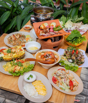 7.8Khá bình thườngThấy ac trên hội review gth quán này ngon hơn thái market lại gần nhà nên đến ăn thử.Điểm cộng là quán có tặng yoghurt tráng miệng, không gian sạch sẽ thoáng mát, nhân viên phục vụ nhanh nhẹn. Còn về phần đồ ăn thì cảm giác hơi thất vọng. Pad thái sợi mỏng, luộc hơi bị nhừ nên ko còn độ dai, hành phi hơi cháy nên nghe rõ mùi khét, thêm mùi vị còn quá ngọt, chưa đậm đà. Món thứ 2 cơm trái thơm thì vị cũng quá kì. Mình nghĩ cơm sẽ đỡ hơn pad thái nhưg hóa ra mik nhầm. Cơm trang trí đẹp, nhìu, có thơm tươi cùng tôm, hạt điều ăn cũng tạm, nhưng điều mình khó chịu là cơm có nho khô. Ăn ko ra mặn cũng ko ra ngọt lại hơi nồng mùi bơ, dễ ngấy cực. Gọi thêm nồi lẩu thì tạm vì ở đâu cũng như nhau, cùng 1 gói gia vị hết. Chốt lại thì chắc do khẩu vị mình không hợp quán này thôi. ...Xem thêm