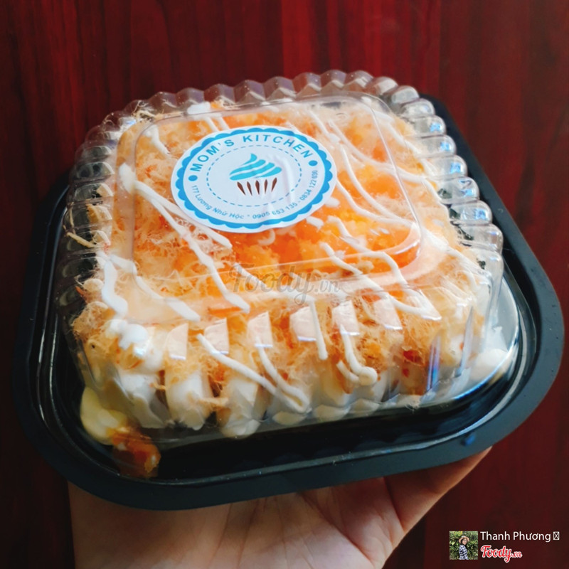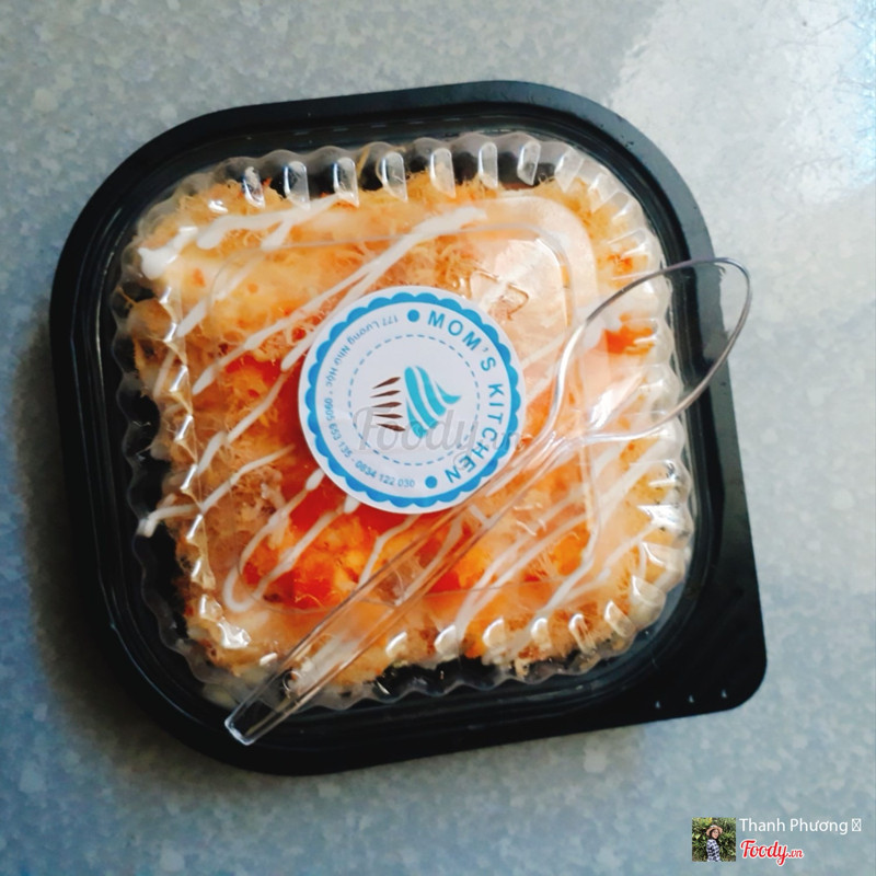 8.6Mom's Kitchen - Bông Lan Trứng MuốiMột tiệm bánh gần nhà mình hay đi ngang qua, mình cũng thấy nó xuất hiện khá nhiều trên foody. Mình order thử phần bông lan trứng muối sốt phô mai lạnh. Mình ăn một vài tiệm khác thì vị loại này nó thiên ngọt thanh hơn. Ở đây mình nghe mùi cheese rõ, vị ngọt rất nhẹ, vị chua cùng cảm giác cũng hơi ngậy một chút. Nhưng vị khá hòa hợp nha, cảm giác khá khác biệt. Cốt bánh mềm ẩm, vị ngọt cũng vừa phải. Trứng muối không bị khô. Tất cả hòa quyện lại ăn khá hợp. Mình chưa thể nói là xuất sắc nhưng loại này ở đây ăn cũng ổn phết nè. Phần 40k nha. Ăn vài muỗng có lẽ sẽ hơi ngán nhanh hơn các tiệm khác. Có cái muỗng xinh xinh đựng trong chiếc túi phân hủy sinh học cũng là 1 điểm cộng cho tiệm. ...Xem thêm
