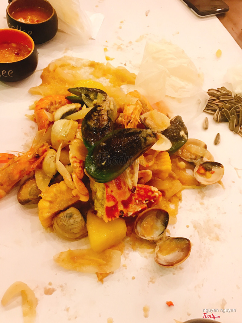 8.2NamasNhà hàng này mới khai trương nè. Thấy foody giới thiệu hấp dẫn quá chịu k được kéo ngay con bạn tới ăn. Chỗ này thú vị phết ăn bốc bằng tay khi ăn chẳng để tring đĩa hay tô mà đổ ra ngay mặt bàn. Cái combo số 6 đúng chuẩn thần thánh í. 179k mà đầy ấp hải sản bắp khoai tay sốt bơ tỏi thơm lừng béo ngậy. Bốc ăn hay hay i như ở nhà. Kiểu như phong cách ăn ấn độ. Món sườn sốt mật ong chỗ này cũng ngon lắm. Thịt sườn mềm thơm thấm đều gia vị. Chạm tay vào là thịt rớt ra. Ăn đã miệng lắm. ...Xem thêm