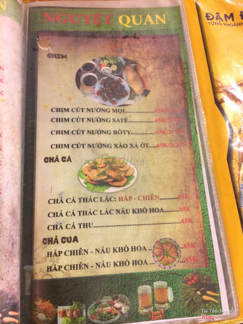 7.2Nguyệt Quán - Hải Sản Tự ChọnHai đứa ra biển ngồi hơi phê, quán có để dĩa cút trên bàn mà cút lộn chớ ko phải trứng cút hèn gì mình thấy rau răm kèm theo :(( Đồ ăn ngon, làm nhanh, nhân viên dễ thương, mình kêu nhiều mà kêu thôi em làm 3 món thôi, nhiều quá anh chị ăn không hết, đúng là đồ nhiều thật giá cả phải chăng. Thích cái thùng bia mini của quán, nhìn nhỏ xinh dui dui nghen Đồ ăn chủ yếu là hải sản cũng khá tươi ngon. Mình thích nhất món mực lá hấp ở đây. To, tươi hấp giòn và ngọt dã man. Các món nhậu có giá tầm trung từ 50- 100k. Quán cũng lai rai thôi chứ không đông khách mấy. Quán được cái rộng rãi bàn ghế cũng dễ ngồi. ...Xem thêm