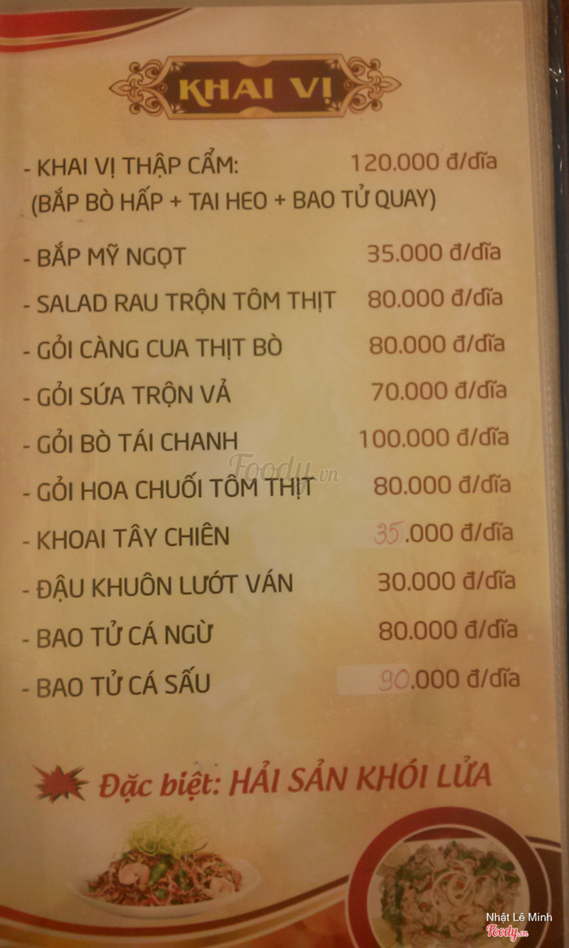 8.4Nhà Hàng Ven Hồ QuánLần đầu đi ăn ở quán hơi xa Trung tâm thế này - gần Mẹ Nhủ lận, nhưng vì được bạn mời nên đành cố gắng. Bên ngoài quán nhìn rất đẹp. Thời tiết mặc dù lạnh và không gian quán là không gian mở, nhưng đi vào trong ngồi thì quán rất ấm cúng. Các món ăn thì đa dạng và đặc sắc - từ các món hải sản đến các món thịt. Ngoài ra còn các món đặc sản của quán như gà đông tảo, vịt trời và ba ba nhưng cần phải đặt trước. Lần sau có dịp phải thưởng thức những món thế này. Giá cả thì cao hơn quán bình dân, nhưng rẻ hơn các quán nhậu ven biển. Phục vụ nhanh nhẹn, gọi cái gì có cái đó. ...Xem thêm