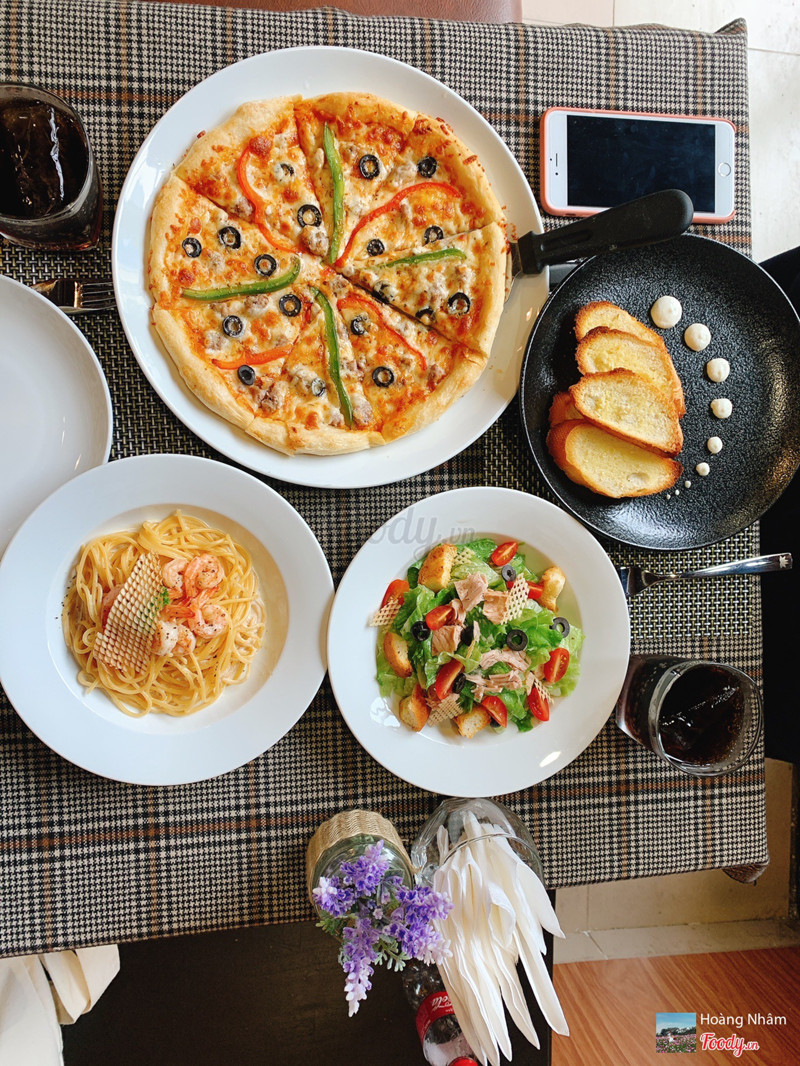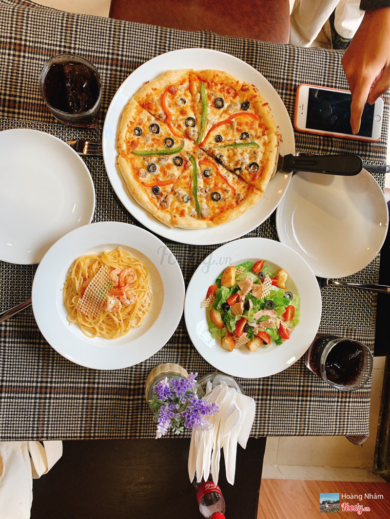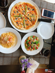 6.0Quán pizza mới mởQuán pizza mới mở ở Tiểu La gần ngay đường 2/9 Quán khá nhỏ và đa số là mua về Nhưng không gian decor bàn ăn decor bàn theo kiểu ý. Sắp xếp nhìn nhỏ nhỏ xinh xinh. Nên lên hình đồ ăn rất là nice. Do mới mở nên sẽ là chủ order và lên đồ cho mình luôn Quán có giá theo combo rẻ. Nhiều 2 người ăn mà rất no.à mỗi ng chỉ có 100k. Mình để đồ lên 1 lúc để chụp hình nên mỳ ý bị nguội. Ăn mất độ mềm nên hơi cứng. Nhưng khẩu vị của mình thì quen ăn có độ ngọt nhiều nên pizza ở đây k hợp với mình lắm. ...Xem thêm