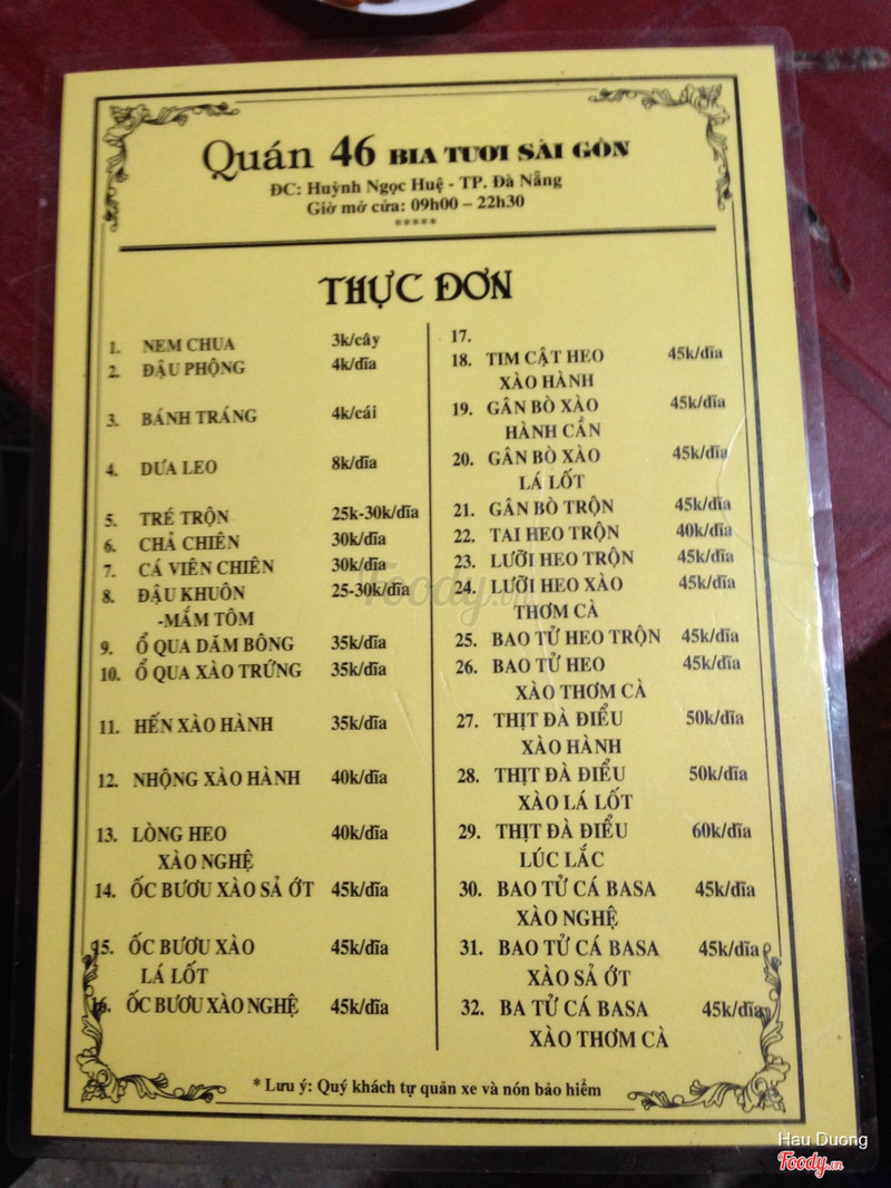 5.8Bia tươi - Huỳnh Ngọc HuệMình đến quán 2 lần rồi, quán bia tươi giá cả bình dân nên rất đông khách, đến tối thì hầu như là full bàn. Đồ ăn ở quán cũng khá vừa miệng giá cũng hợp lí, bia thì 18k một can. Món đậu khuôn chiên ở đây rất ngon, đậu chiên rất vàng và thơm, ăn kèm rau tía tô và mắm tôm, có lẽ bàn nào cũng gọi món này đó. Quán có hơi ít phục vụ nên cũng hơi bất tiện. Đồ ăn ở đây gọi rất lâu nên mọi người nên gọi một lần ngay từ đầu cho tiện. Tụ họp bạn bè lai rai tại đây cũng khá vui đấy, sẽ còn quay lại. ...Xem thêm