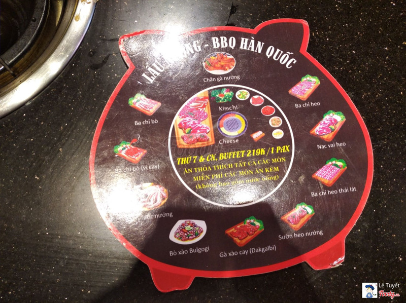 9.0Romance HeoNhà mình đi 12 người, lúc 6h30, quán khá vắng, chỉ có nhà mình với 1 bàn nữa. Mình chọn buffet ăn cho thoải mái. Sốt ớt xanh ngon cực. Thịt tẩm ướp vừa ăn, ngon, panchan cũng đa dạng nữa. Không gian rộng rãi, có cả máy hút mùi nên cũng ko lo bị ám mùi đâu nha. Mấy bạn nhân viên dễ thương, nhiệt tình lắm, gọi là mang đồ ra liền. À mà quán đang có chương trình đi 5 tính tiền 4, rất lợi cho nhóm đông người. ...Xem thêm