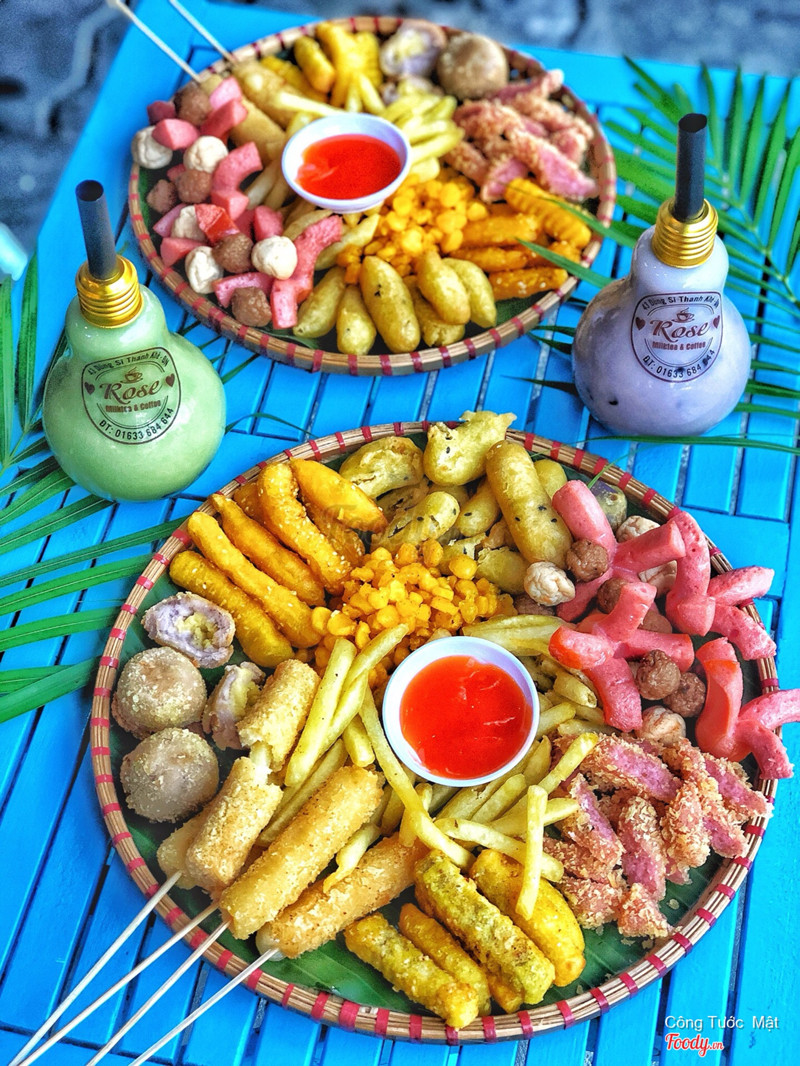 7.6Rose - Trà Sữa Bóng Đèn & Ăn VặtQuán nhỏ nhưng dễ tìm, mình và bạn order 1 mẹt nhỏ 99k mà ăn ko hết lun. Mẹt của mình gồm cá viên, bò viên, xúc xích, nem chua rán, 2thanh phô mai que, bắp chiên giòn vs 3-4 loại khoai. Nhìn mẹt thấy ngon nhưng ăn rồi thì khá ngán thì chủ yếu mẹt toàn khoai, nem chua rán mình ăn lúc đó có hơi hôi nhưng bù lại bắp chiên giòn khá ngon. A/c chủ quán nhiệt tình, thân thiện. Bây h đang có giảm giá 10% cho 20/10 đó ...Xem thêm