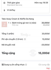 7.8Take Away Cream & Waffle Da NangTự nhiên mấy hôm nay cứ thèm bánh tổ ong nên lên now tìm quán bán. Món này đà nẵng chỉ có vài chỗ bán thôi. Mình order 1 phần bánh vị dừa thêm phô mai giá 15k sau khi nhập code now. Bánh vị dừa mà mình k nghe mùi dừa gì cả, giống bánh truyền thống bỏ phô mai hơn. Phô mai bỏ vô ăm mặn mặn mình k thích lắm. Ăn 1 cái là ớn le rồi á. Bánh ship tới còn ấm ấm, viền bánh giòn nhẹ, bánh mềm nhưng mình thấy k ngon bằng bên mr oppa. Bánh ship tới cũng thơm lắm ...Xem thêm