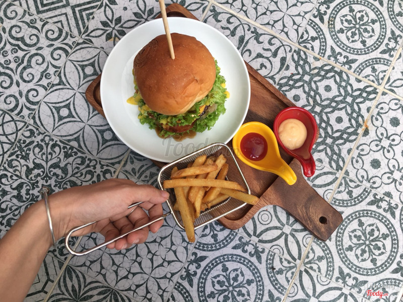 7.6Teddy Garden - Korean RestaurantBuổi ăn trưa của mình gồm 1 phần hamburger, 1 khoai tây chiên và 1 ly nước ngọt, quá đầy đủ dưỡng chất cho 1 buổi trưa. Hamburger miếng thịt với miếng trứng dày mo nhé, ko như những quán khác cắt mỏng lét à, đáng tiền nào của đấy, cắn 1 miếng nước sốt xịt đầy ra miệng cảm giác thật khó tả. Khoai tây ship về nên hơi dịu 1 chút, nhưng shop cho đến tận 2 loại nước chấm, rất nhiệt tình. Nước chấm nao cũng ngon cả. Lần trước mình có ăn ở quán 1 lần thì chỗ quán hỏi nhỏ và chật. nên quyết định oder trên now về ăn cho đỡ. ...Xem thêm
