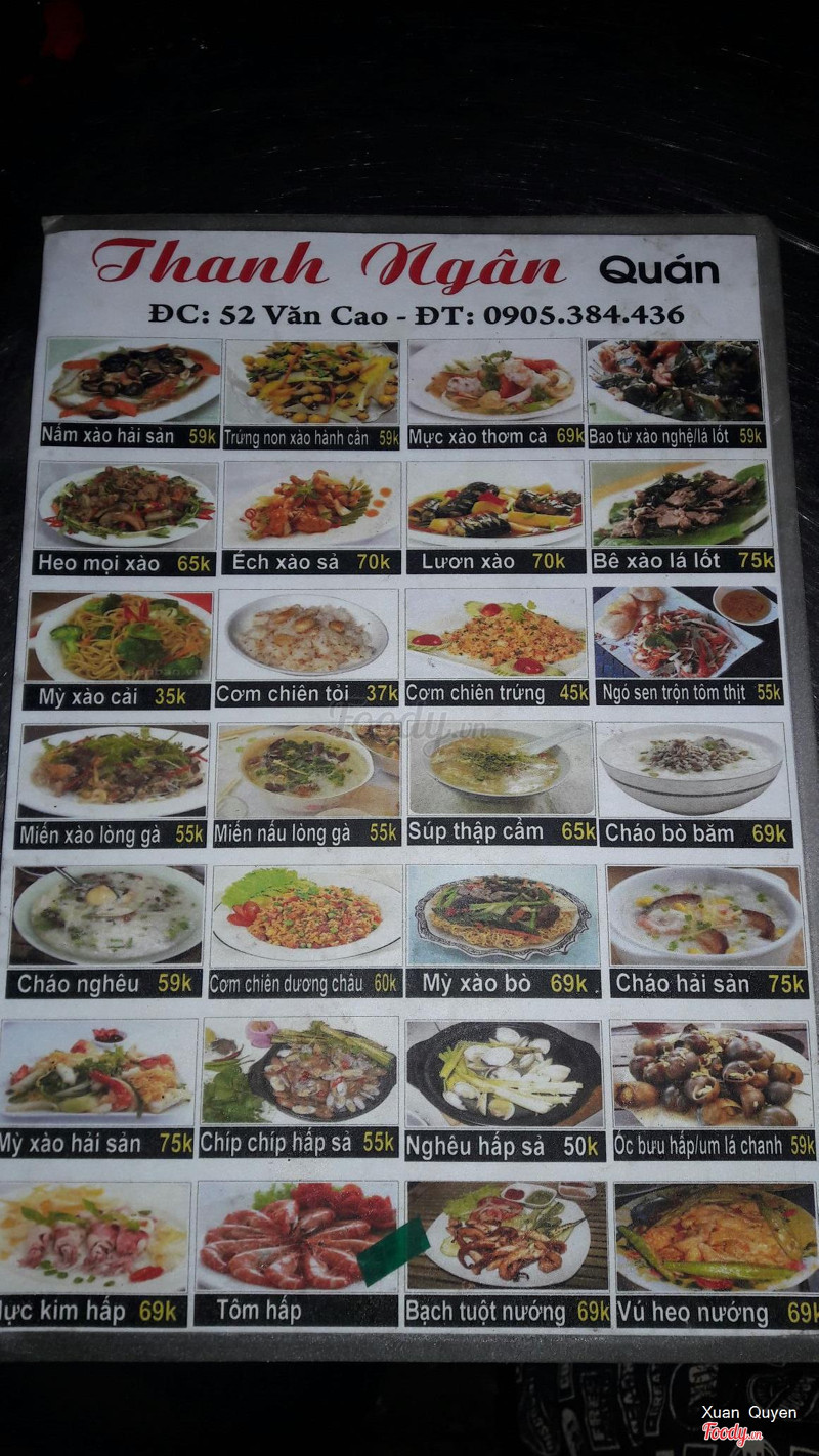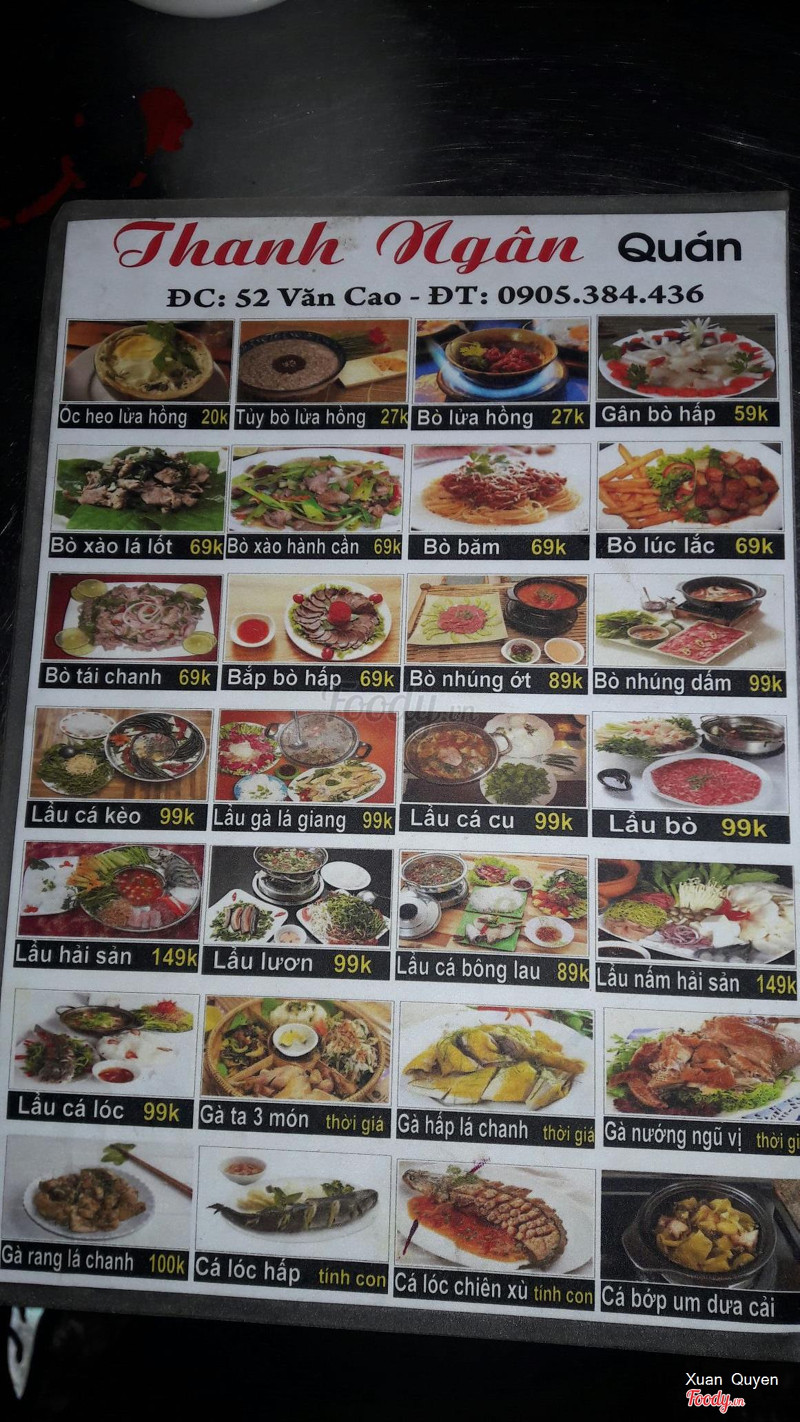 8.0Thanh Ngân Quán - Các Món NhậuQuán nằm ngay bờ hồ đường Hàm Nghi. Quán đóng cửa cũng khá trễ. Thực đơn cũng đa dạng, nhiều món. Oder món cũng nhanh, giá cả thì quá chi là hữu nghị luôn. đi tầm 8 người mà ngồi mân mê mòn mỏi, đến lúc thanh toán mỗi người tầm 50k thôi. ...Xem thêm