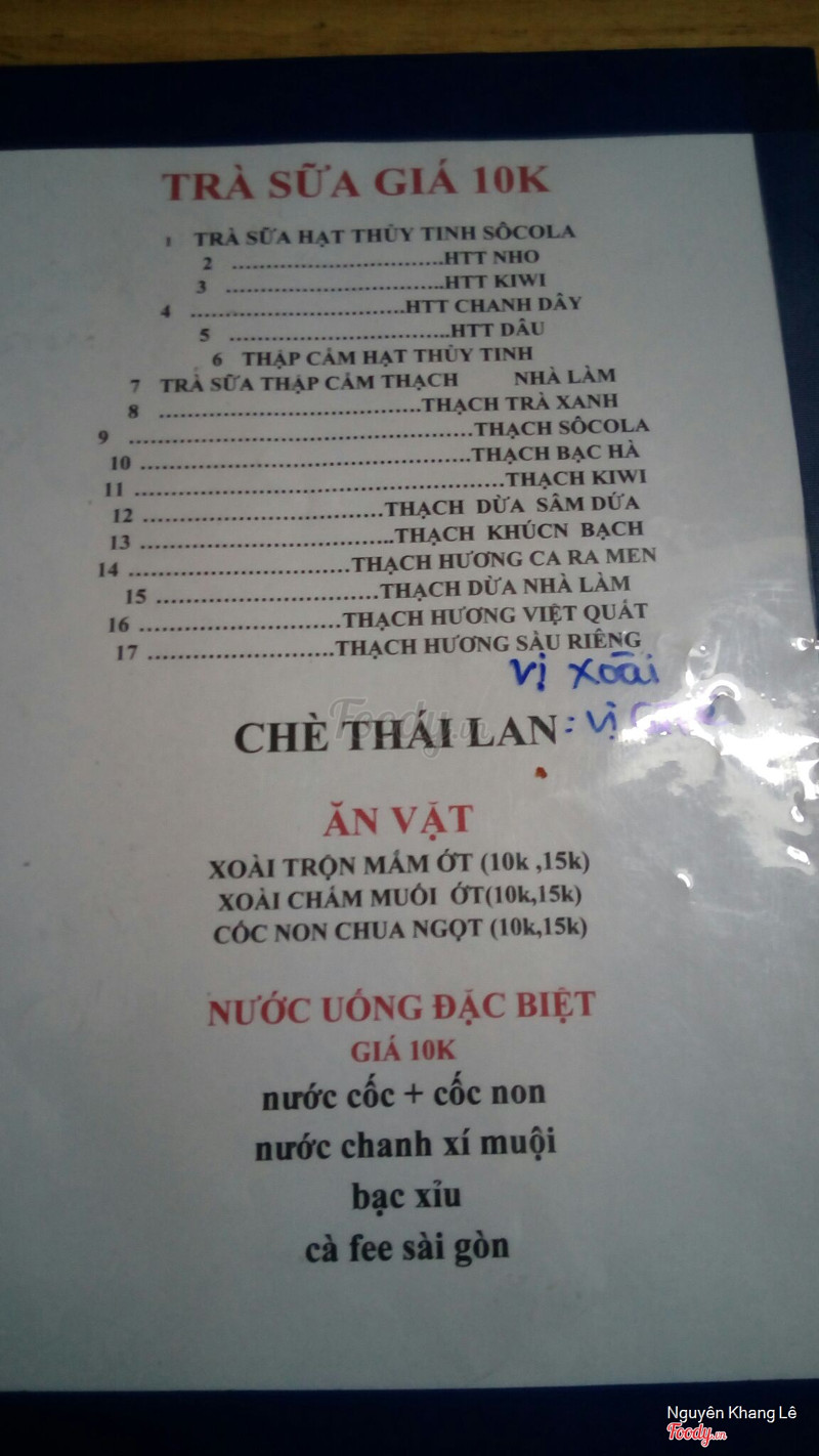 8.2Trà sữa cho sinh viênQuán này mở khá lâu rồi, nhưng trước đi chỉ bán cafe và các loại nước giải khát, sau này mới mở thêm trà sữa :) vào test thử. Menu cũng như những quán khác, không có gì mới :3 nhưng mà khi cái ly được đem ra thì mình khá là bất ngờ, ly đầy thạch :v mà loại thạch có nhân bơ bên trong, béo béo. Bánh tráng trộn thì ổn, không có gì để chê :D thế này thì sẽ ghé quán dài dài. Cô chủ quán cũng vui tính nữa. ...Xem thêm