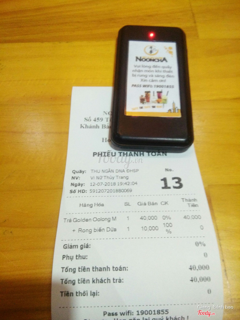 4.2Nooncha Tôn Đức ThắngĐến Nooncha vào buổi tối thứ 5, quán không đông khách cho lắm. Không gian trang trí đẹp, rộng rãi và rất mát mẻ. Bác giữ xe rất vui tính và nhiệt tình. Mình và bạn gọi 1 trà đào, 1 trà sữa Olong. Trà đào hơi ngọt, trà olong 70 đường nên cảm nhận vị trà rất rõ. Nhân viên niềm nở, phục vụ nhanh chóng. Tuy nhiên có 1 điều không thích lắm đó là có nhóm khách ngồi đánh bài, k thấy ai ra nhắc nhở cả. Giá cả vừa phải, phù hợp với túi tiền, menu đa dạng. ...Xem thêm