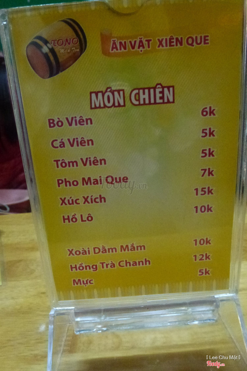 7.4Trà Sữa Tono - Điện Biên PhủTối hôm qua trên đường đi dạo với bạn thì phát hiện thêm 1 chi nhánh mới của trà sữa ToNo cho các Fan trà sữa tha hồ tụ tập, dễ dàng tìm thấy quán nhờ bản hiệu to và sáng. Chỉ định chụp vài tấm rồi đi, nhưng lại bị hấp dẫn vô cùng vì gian hàng đồ nướng ở phía trước và bé bán trà sữa khá xinh (lý do phụ). Vẫn như mọi khi 2 trà sữa 1 trà chanh và không thể quên lý do mà cả lũ tấp vào quán đó là đồ nướng :3, đánh giá sơ thì đồ nướng ở đây nêm nếm ổn, có điều nước tương chưa cay lắm và cái xiêng ba chỉ thì hơi nhạt, giá tôm 10k/1 xiêng thì có vẻ ko hợp lý lắm, còn lại mọi thứ mình thấy đều ở tiêu chuẩn ngon bổ rẻ cho sv. Vốn đã no bụng từ trước nên chỉ thưởng thức có thế, hứa hẹn lại ghé đến quán trong tuần để thử nốt các món nướng còn lại :3 ...Xem thêm