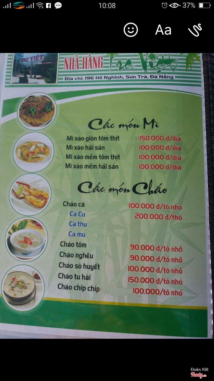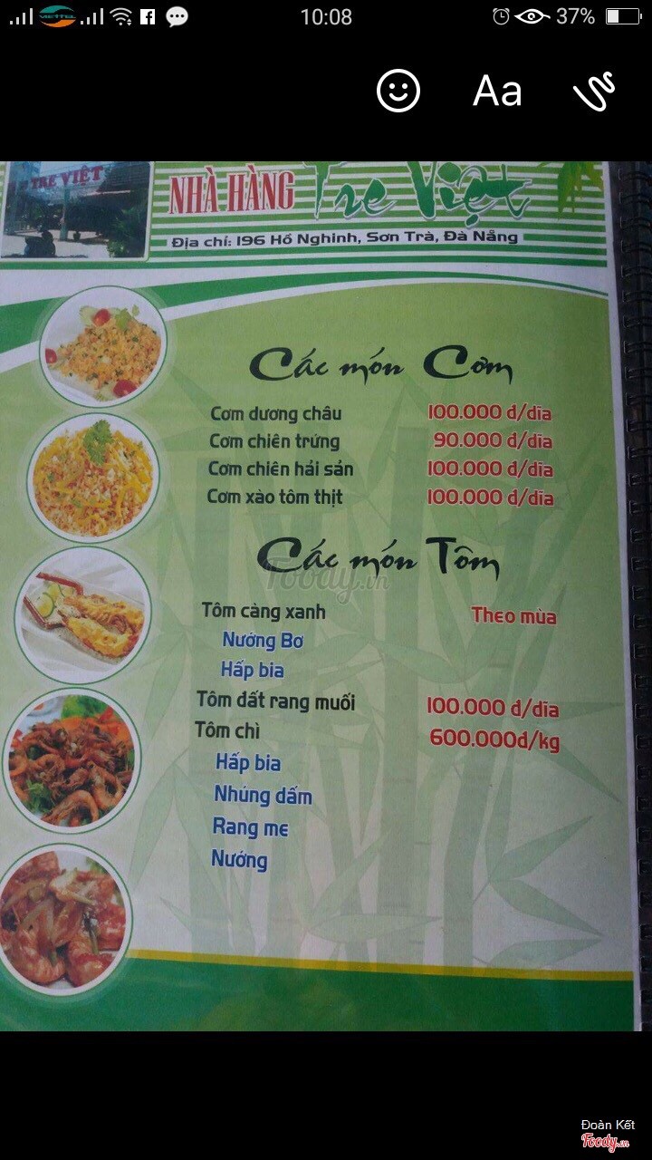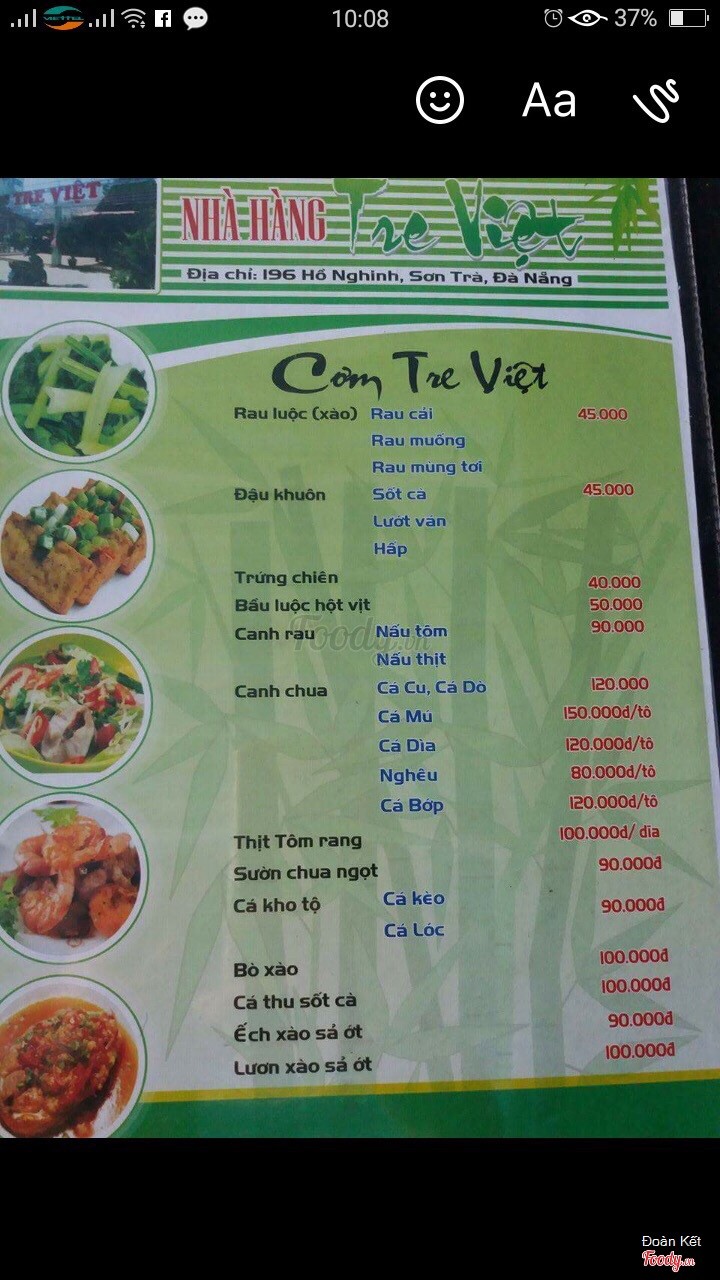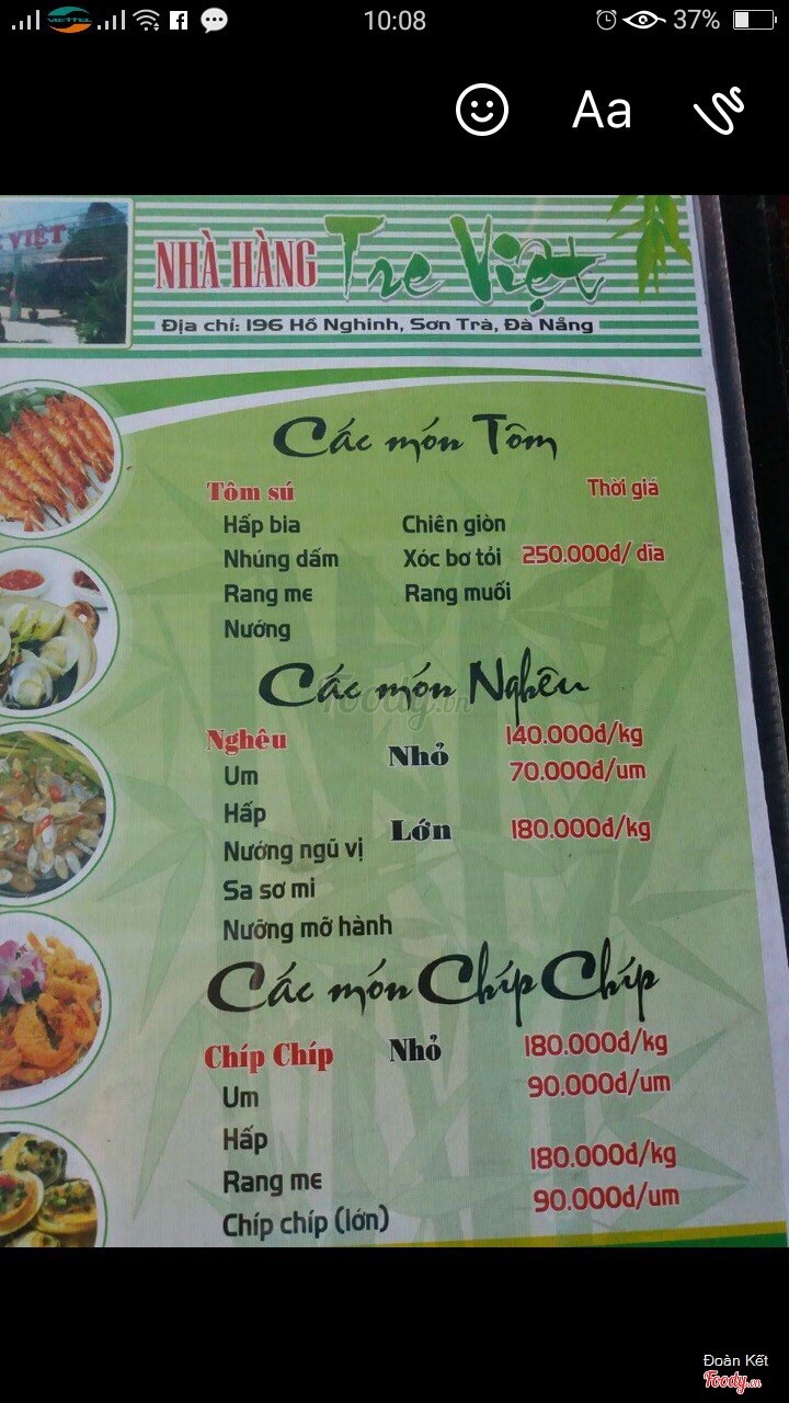 9.4Hải sản Tre Việt rất tuyệtĐến Đà Nẵng là đến Tre Việt thường xuyên, hải sản tươi sống và nấu ăn ngon, luôn có hải sản rất phong phú. ...Xem thêm