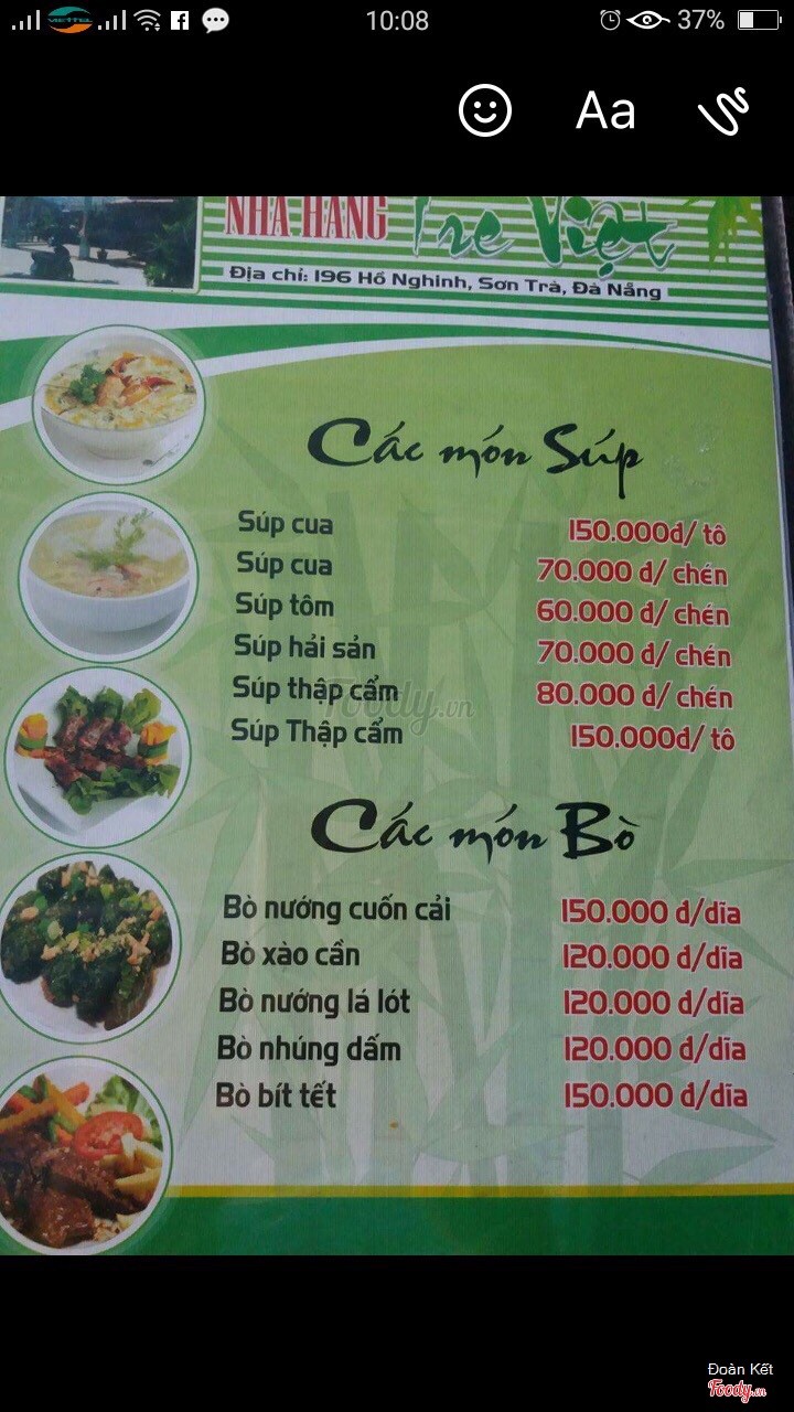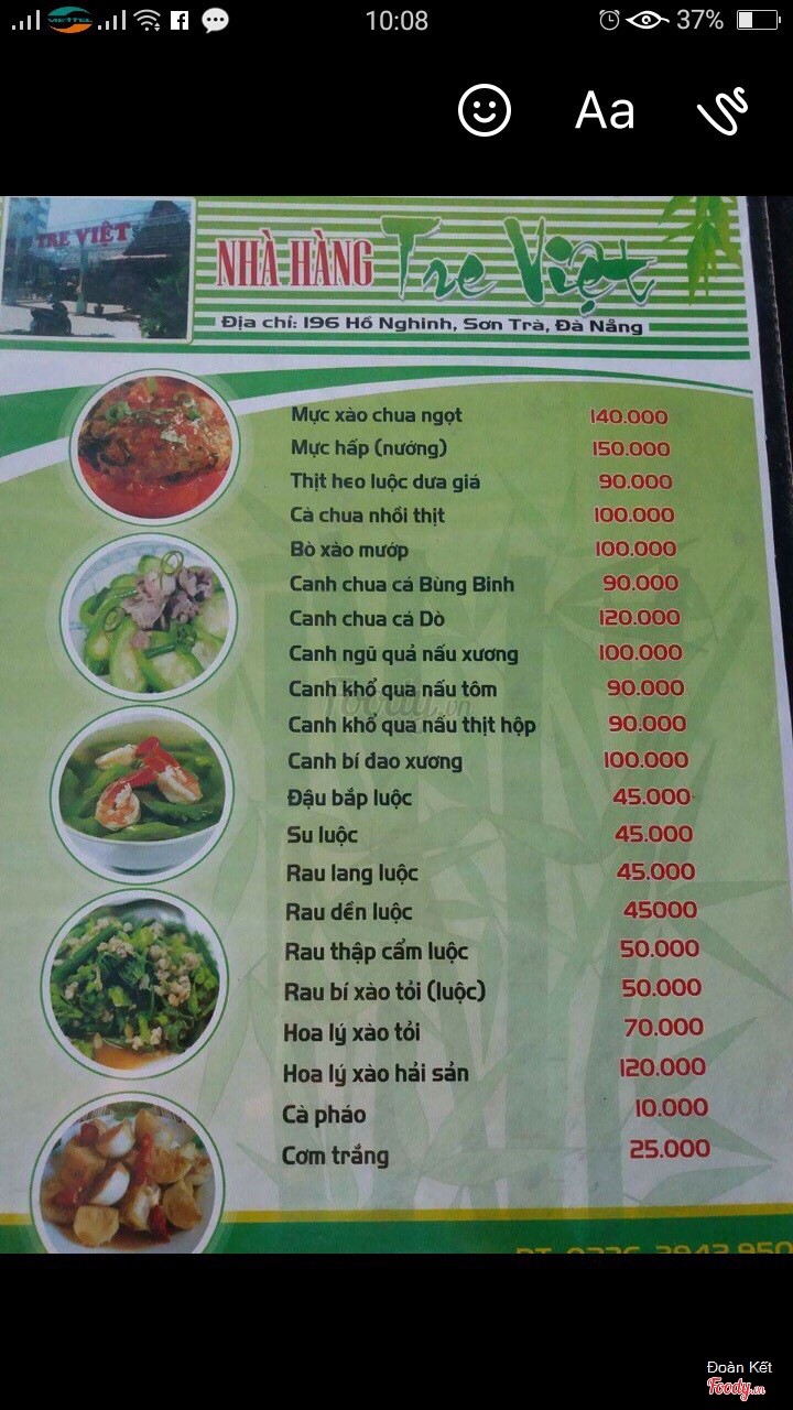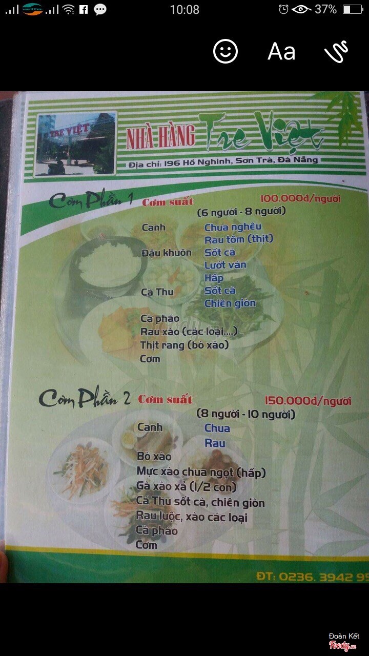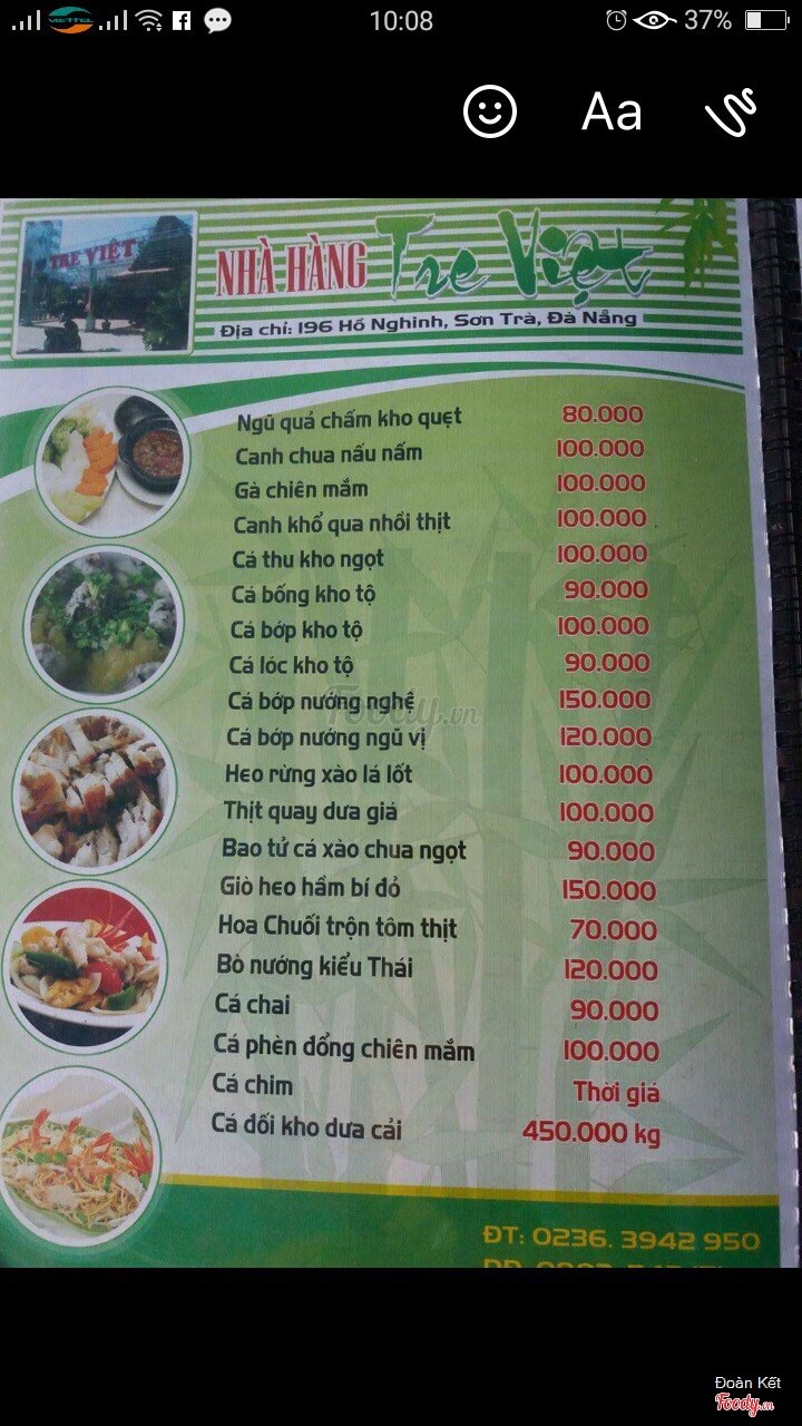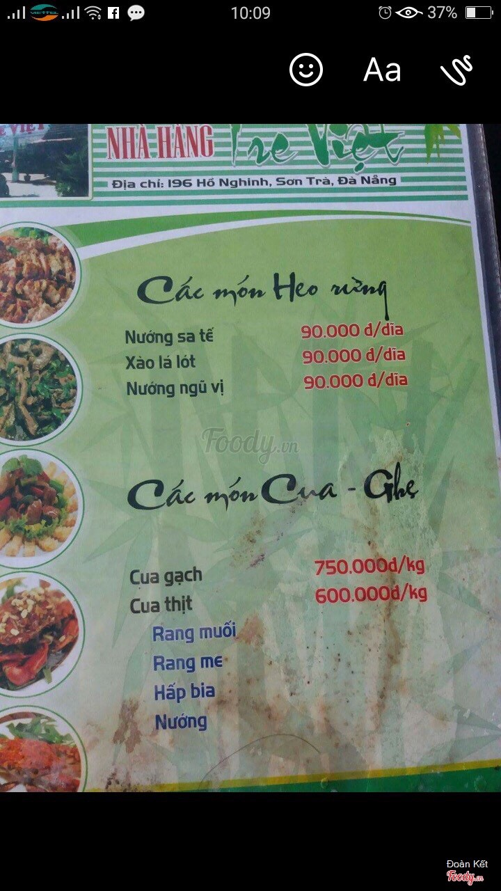 9.4Hải sản Tre Việt rất tuyệtĐến Đà Nẵng là đến Tre Việt thường xuyên, hải sản tươi sống và nấu ăn ngon, luôn có hải sản rất phong phú. ...Xem thêm